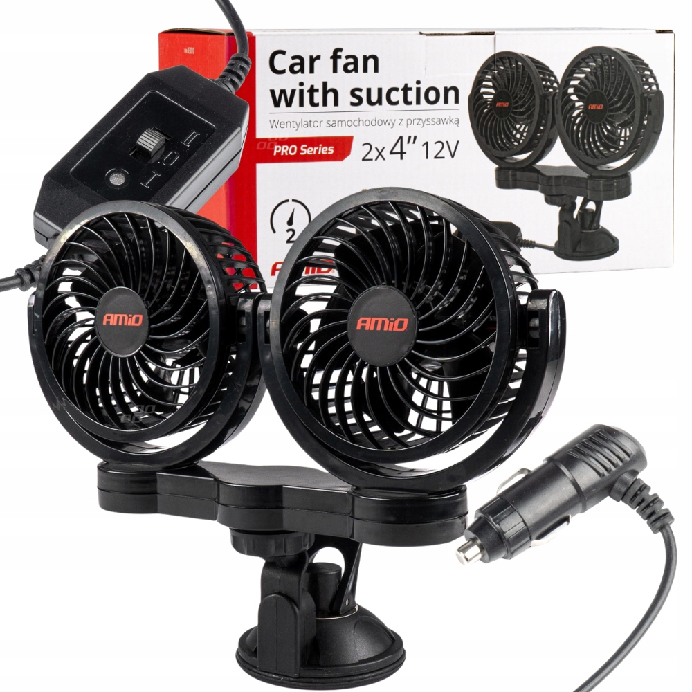 Amio Pro Wiectrak Car Fan, що працює на автомобілі світліший 12В 2x 10 см, подвійний, прикріплений до присмоктувальної чашки