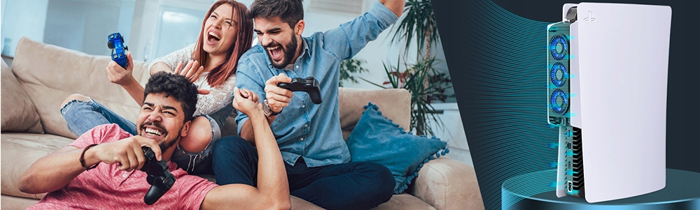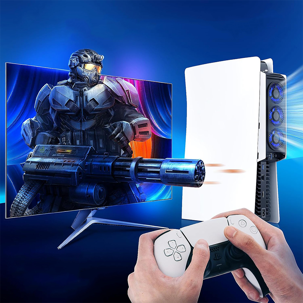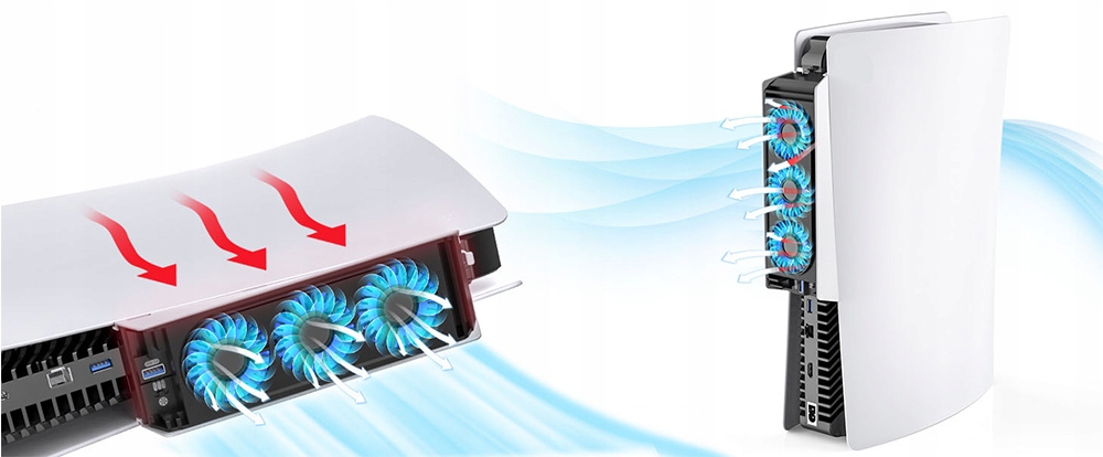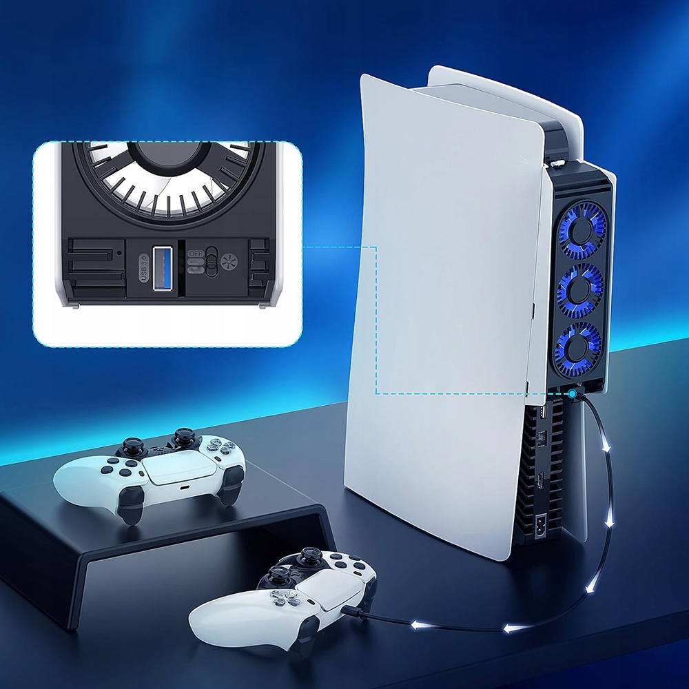 Зовнішній вентилятор охолодження, сумісний із PlayStation 5 – моторизована та цифрова версії. Оснащений 3 швидкими вентиляторами, він ефективно розсіює тепло, що виділяється консоллю, допомагаючи запобігти перегріву навіть під час тривалих ігрових сеансів. Краще охолодження означає довший термін служби та стабільнішу роботу PS5.