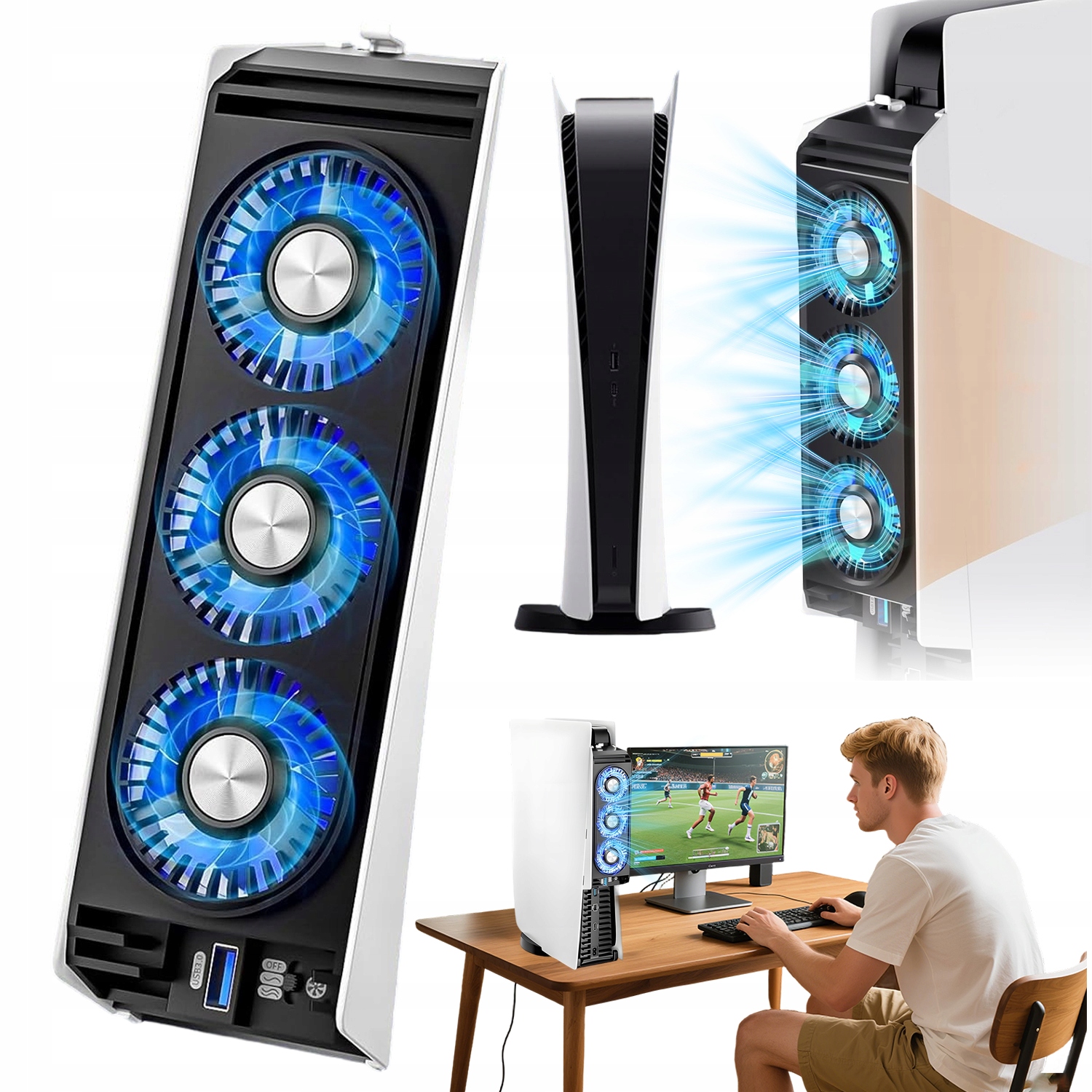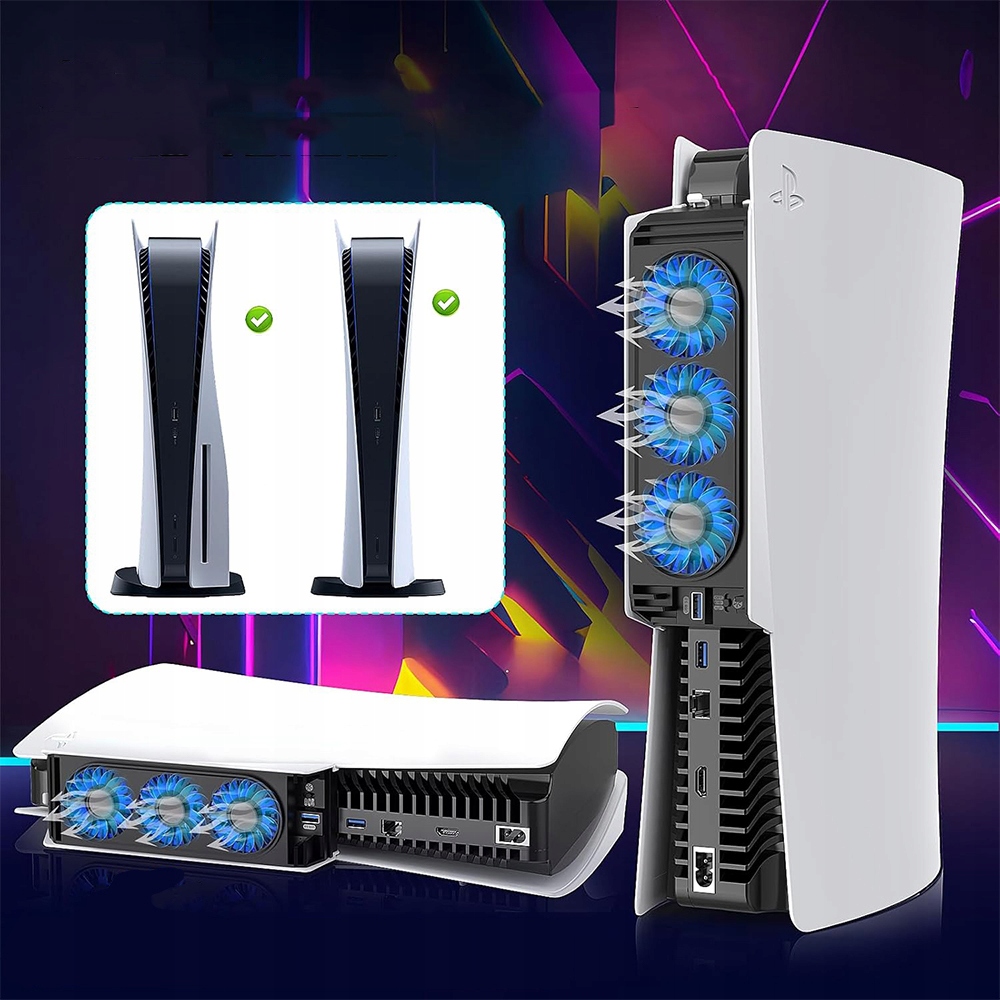 ВЕНТИЛЯТОР ОХОЛОДЖЕННЯ ДЛЯ PS5 3 ВЕНТИЛЯТОРИ 2 ШВИДКІСТЬ СВІТЛОДІОДНЕ ПІДСВІТЛЕННЯ