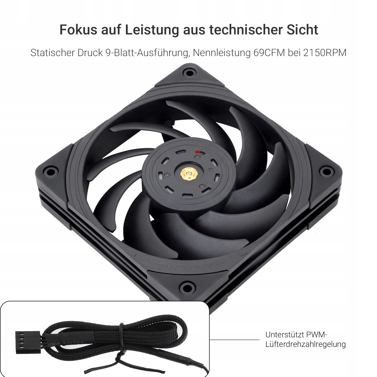 - Розміри комп’ютерного вентилятора: 120 x 120 x 25,6 мм, швидкість: 2150 об/хв ± 10 %, шум ≤ 28,1 дБА З’єднання: 4-контактний ШІМ, струм: 0,16 А, тиск повітря: 2,87 мм H2O (макс.), потік повітря: 69 CFM, більший потік повітря для кращого охолодження . Трикутна симетрична конструкція рами збільшує ефективну площу повітряного потоку вентилятора радіатора та підвищує міцність вентилятора на стиск.