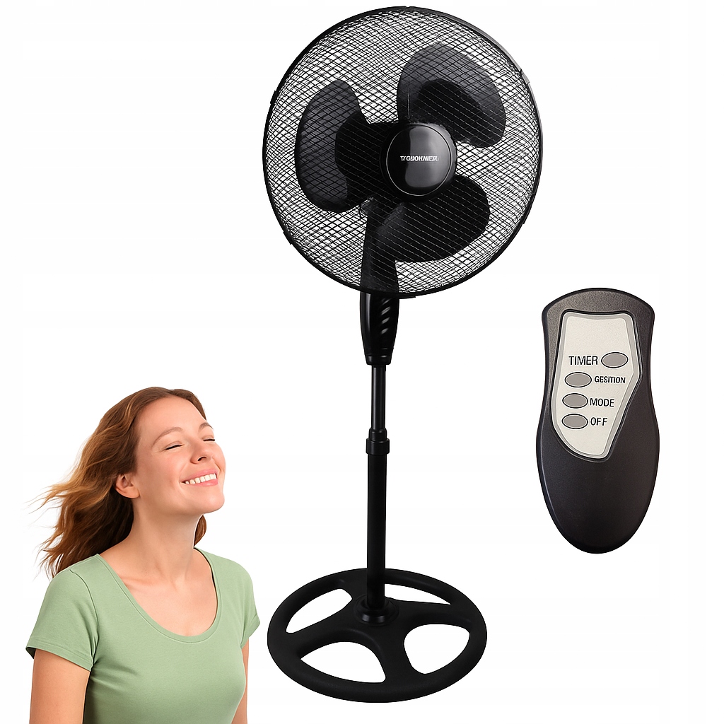 Оснащений ефективним двигуном 40 Вт, пропелером діаметром 40 см і трьома рівнями швидкості повітряного потоку, він забезпечує сильний, рівномірний потік повітряпри низькому рівні шуму - лише 55,98 дБ. Функція коливання 90° дозволяє ефективно охолоджувати всю кімнату, а дистанційне керування та вбудований таймергарантують максимальну зручність роботи, не встаючи з місця.