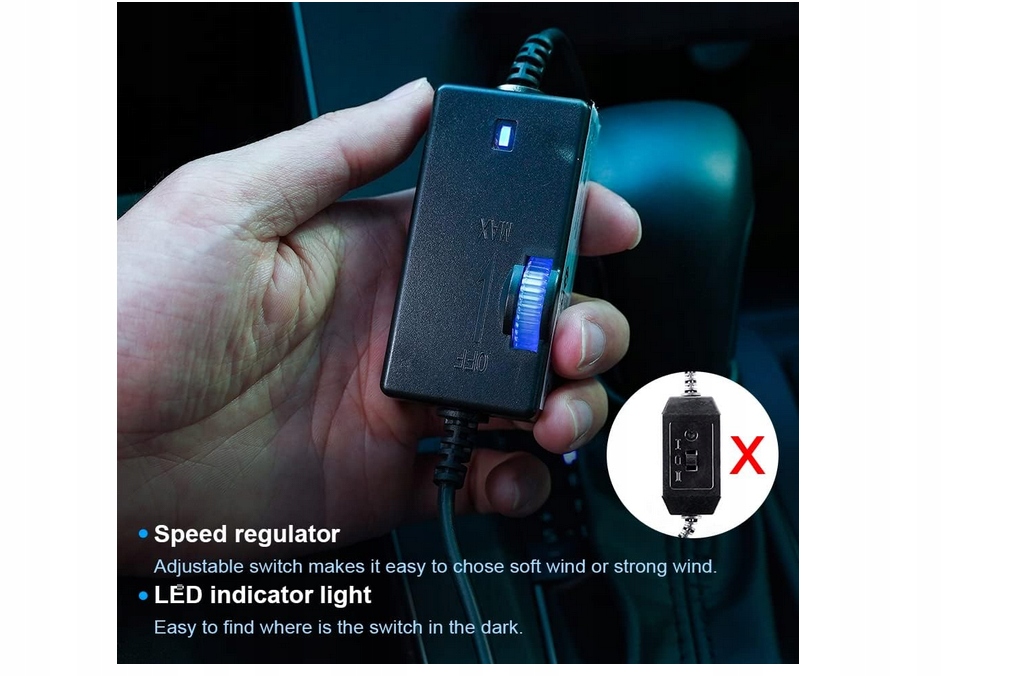 Універсальний автомобільний вентилятор:Автомобільний вентилятор MITCHELL є чудовим інструментом для циркуляції повітря, він не лише охолоджує ваш автомобіль у спекотні дні, але також може видаляти вологу з внутрішнього скла в холодні дощові дні, щоб зменшити диму або сигаретного пилу та швидко й ефективно видаляти небажані запахи. Ідеальна заміна кондиціонера для заднього сидіння. Завдяки великому регулятору швидкості ви можете легко змінювати швидкість вітру. Плавне регулювання швидкості, яке не має певного обмеження швидкості вітру, забезпечує максимальний комфорт