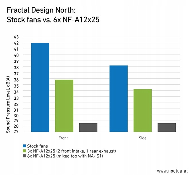тести, проведені в лабораторії ATTUA, показали, що використання 6 вентиляторів та випускних вентиляторів у змішаній конфігурації забезпечує найсильнішу роботу порівняно зі стандартним набором вентиляторів 2 в передній частині та 1 ззаду. Це використання вентиляторів дозволяє значно знизити швидкість вентилятора та рівень шуму, зберігаючи ту саму температуру. У випадку шанувальників більше означає тихіше!