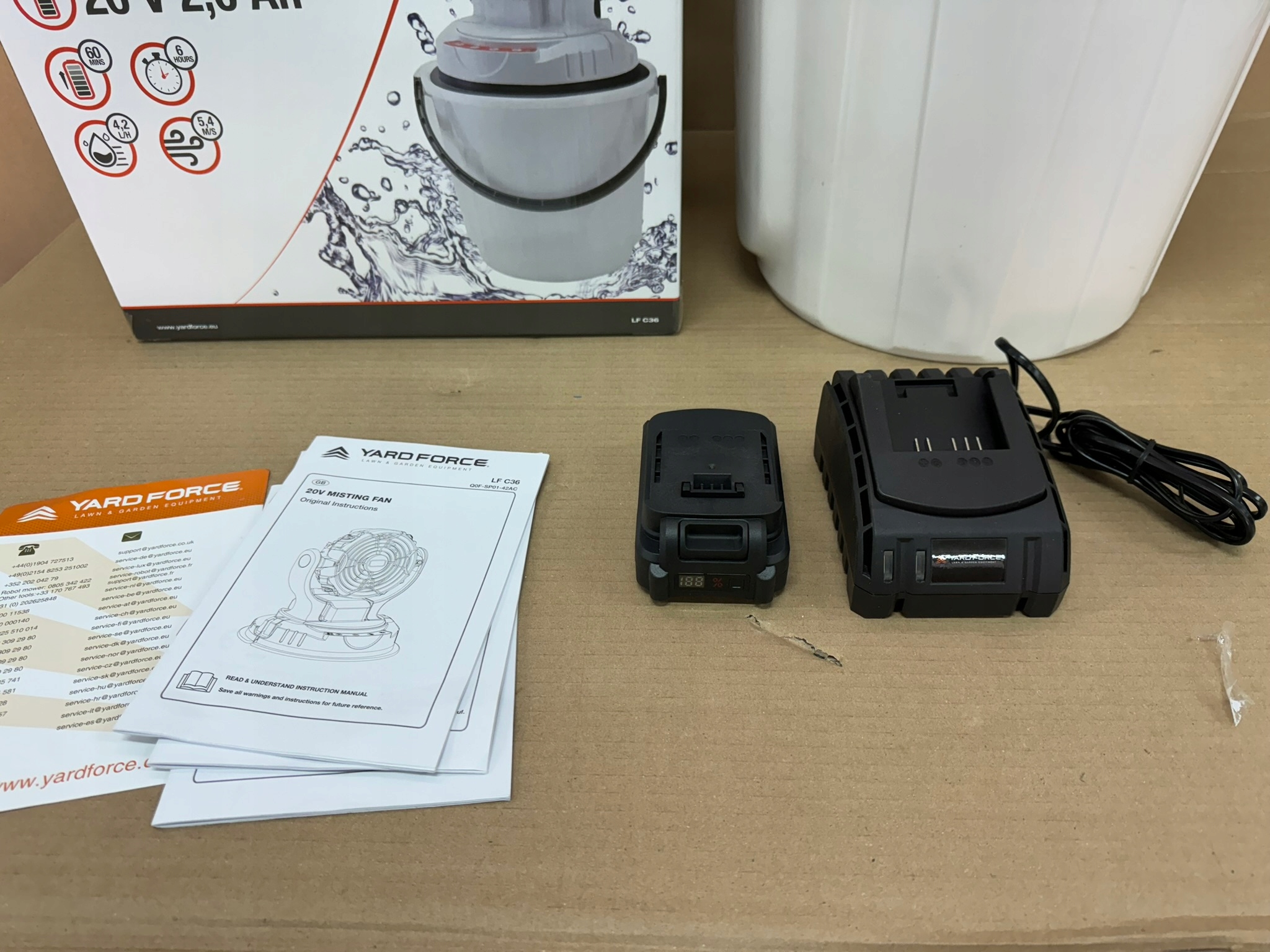 - назва предмета: YARD FORCE - вентилятор небулайзера з живленням від батареї, LF C36 - містить швидкий зарядний пристрій