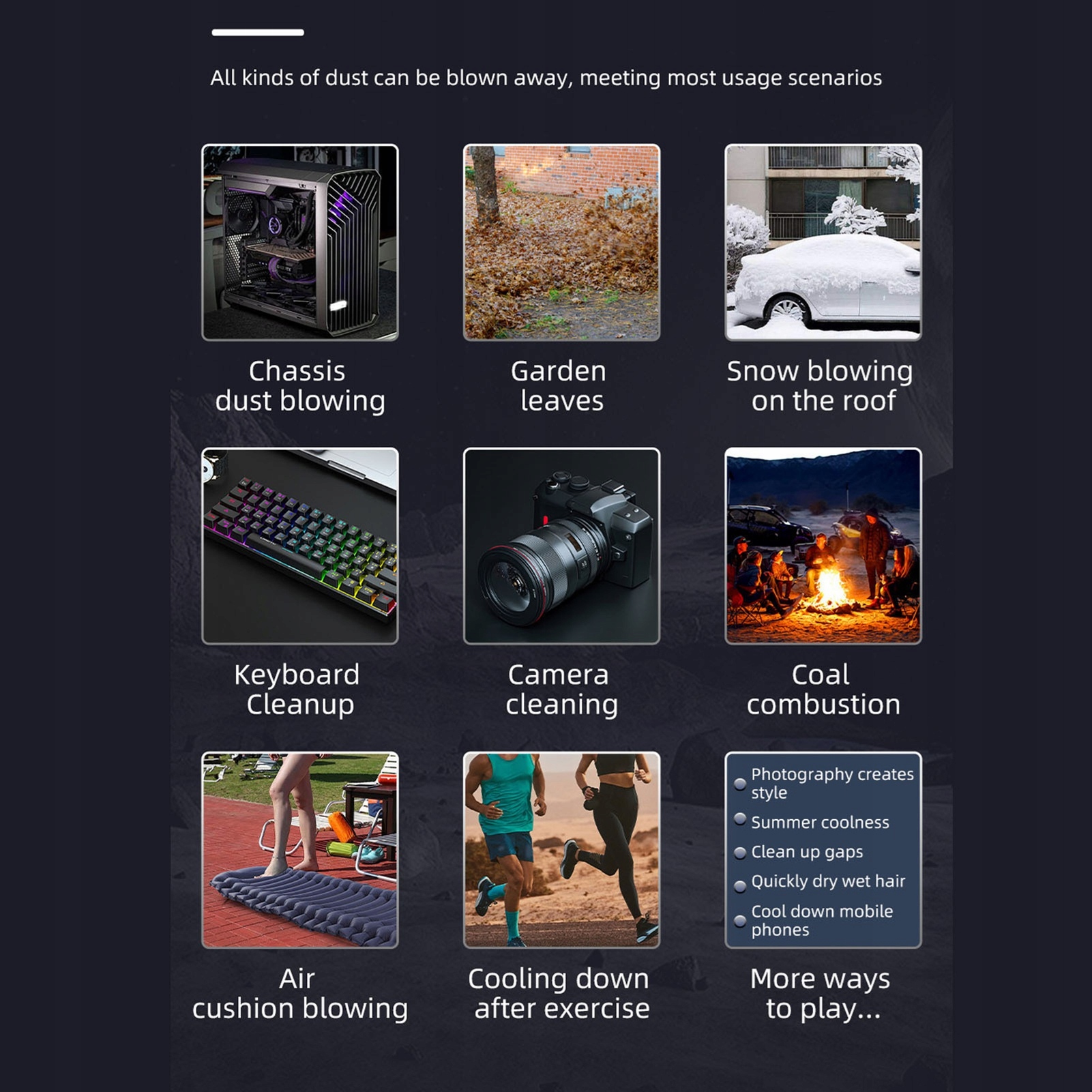 2. [Універсальне очищення] Придатне для очищення комп'ютерної клавіатури, ноутбуків, камер, автокрісла, жалюзі та навіть для наповнення предметів, таких як матраци та човни, початковий пікнік або пожежа в кемпінгу.