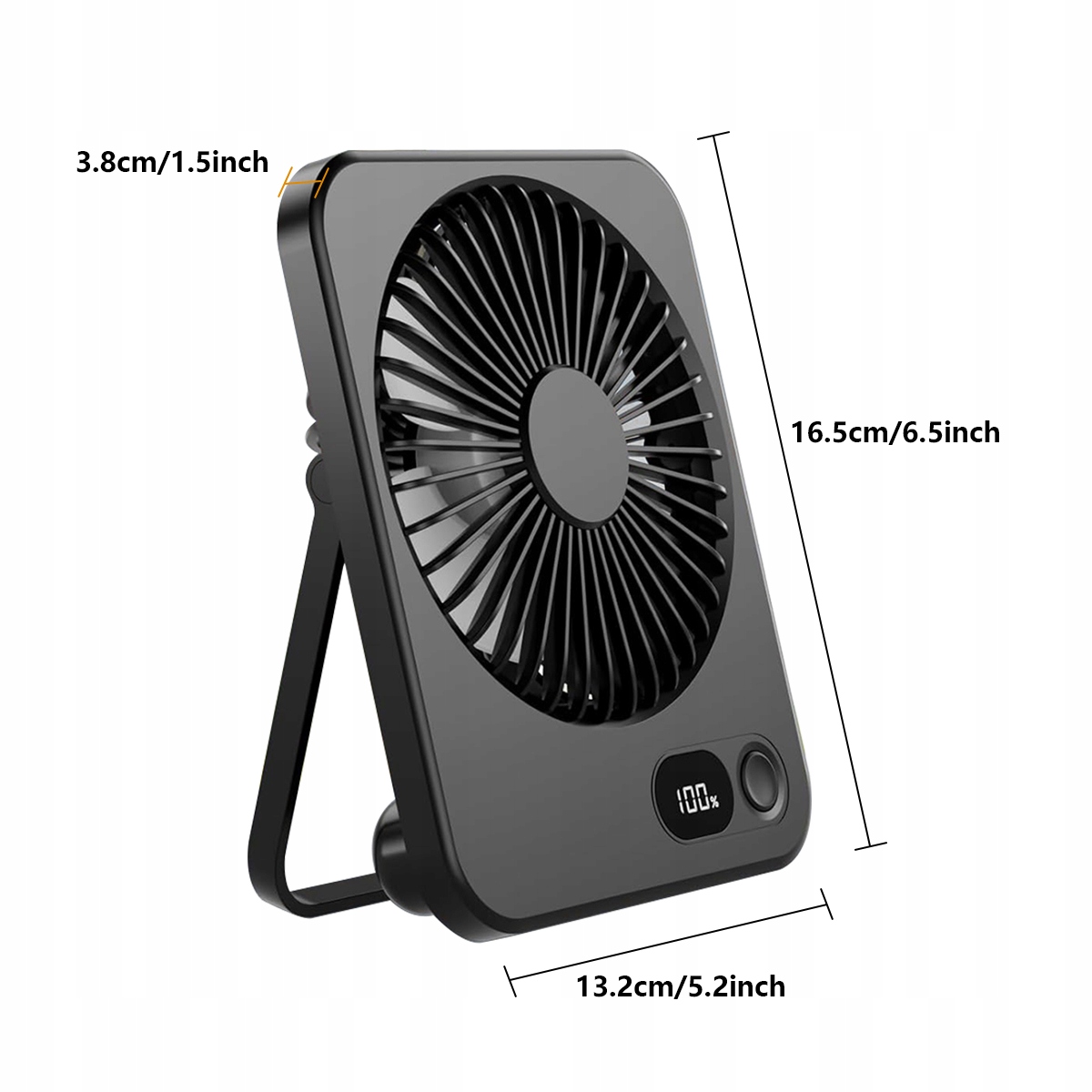 【вентилятор подорожей з цифровим дисплеєм, надзвичайно портативний! Дисплей швидкості вітру дозволяє зручно регулювати швидкість вітру відповідно до різних потреб, а також ви можете побачити решту заряду акумулятора, що дозволяє легко визначити, чи потрібна зарядка перед поїздкою! Він має розміри 16,5 х 13,2 х 3,8 см і важить 0,22 кг. Цей маленький вентилятор столу компактний, легкий та портативний, що дозволяє легко переносити та упакувати у ваш рюкзак.