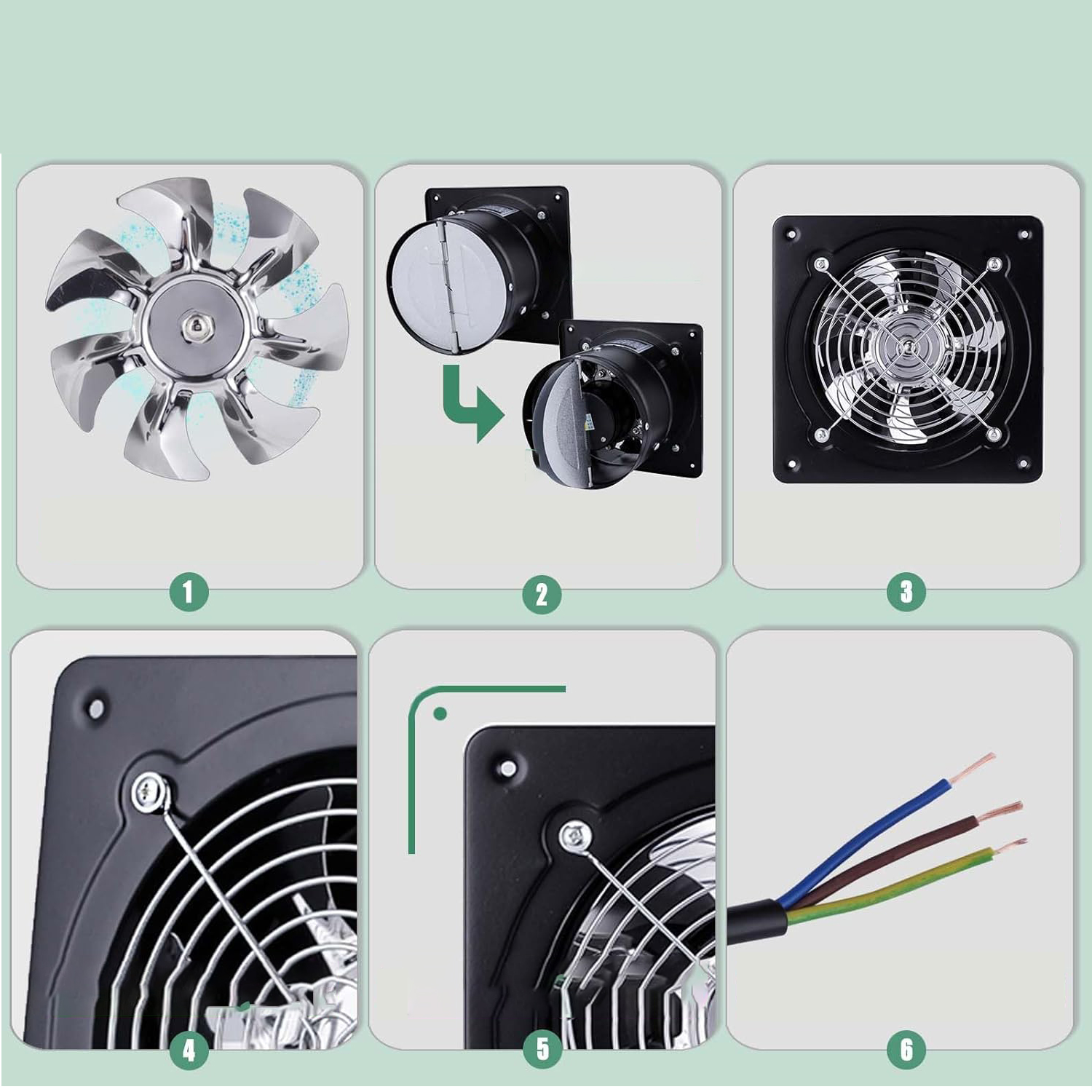 Він виготовлений з високоякісної заліза і має повністю закритий двигун, який стійкий до вологи та вологи, що робить його міцним вентилятором. практичний та унікальний.
