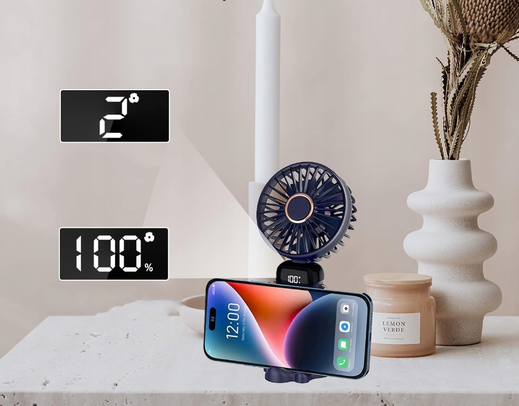 Цей невеликий портативний вентилятор оснащений інтелектуальним цифровим дисплеєм із холодним світлом, який може відображати рівень швидкості вітру та споживання енергії, що зручно відстежувати живлення, що залишилася. Розкажіть про рівень заряду акумулятора та заряджайте його вчасно.