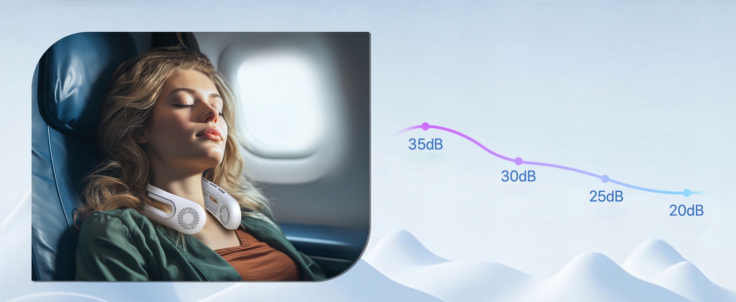 Якщо вам потрібне комфортне середовище для роботи або розслаблення в офісі або вдома, портативний вентилятор на шиї - ідеальний вибір. Завдяки чотирьох налаштуваннях швидкості, такими як режим сну, низький, природний та турбо, наш вентилятор шиї без лопатей забезпечує індивідуальний комфорт. Особливо в режимі сну це працює на дуже тихому, низькому рівні децибелів, щоб допомогти вам розслабитися та насолодитися мовчазним середовищем