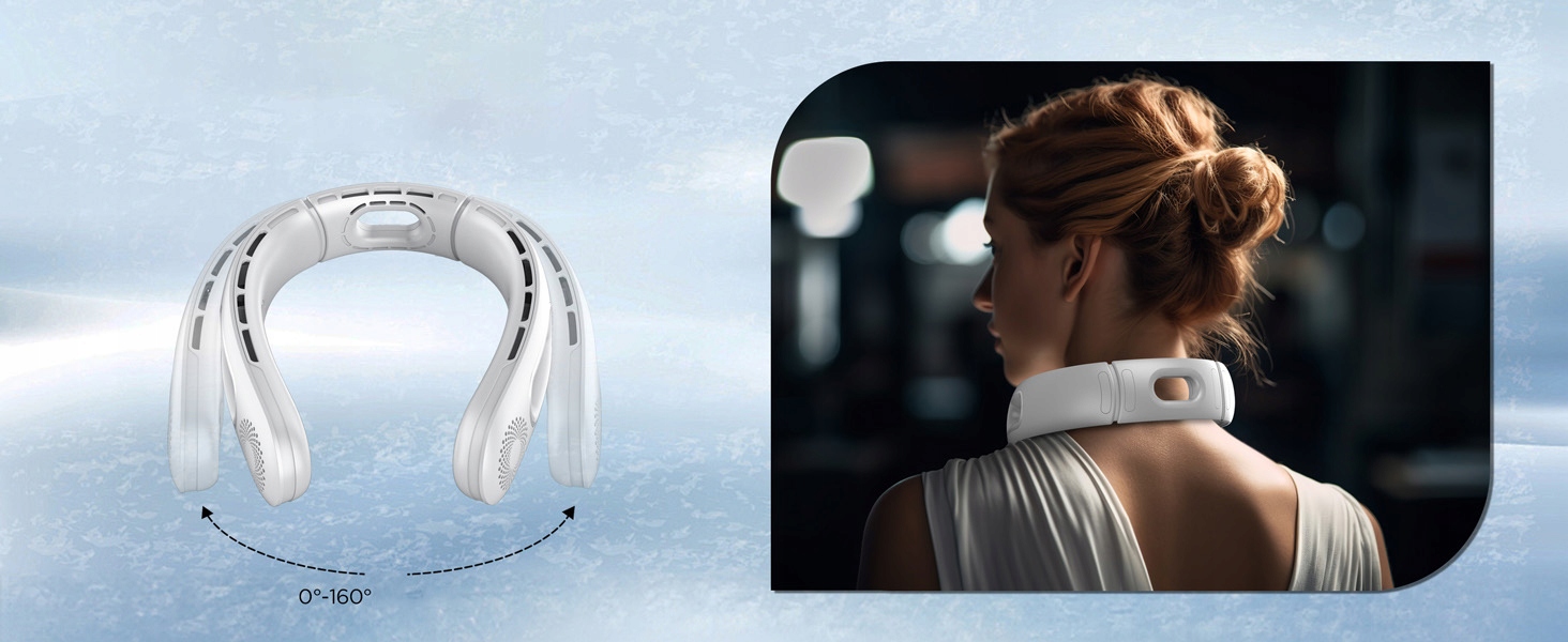 Потік повітря з двома шарами для охолодження нашого портативного вентилятора на шиї має унікальний отвір на задній частині та два великих отворів з обох боків, які створюють потужний повітряний отвір на 360 градусів, що забезпечує подвійний потік повітря. Цей інноваційний дизайн не тільки максимізує потік повітря, але й робить вентилятор надзвичайно легким, що дозволяє йому носити його довго без дискомфорту шиї