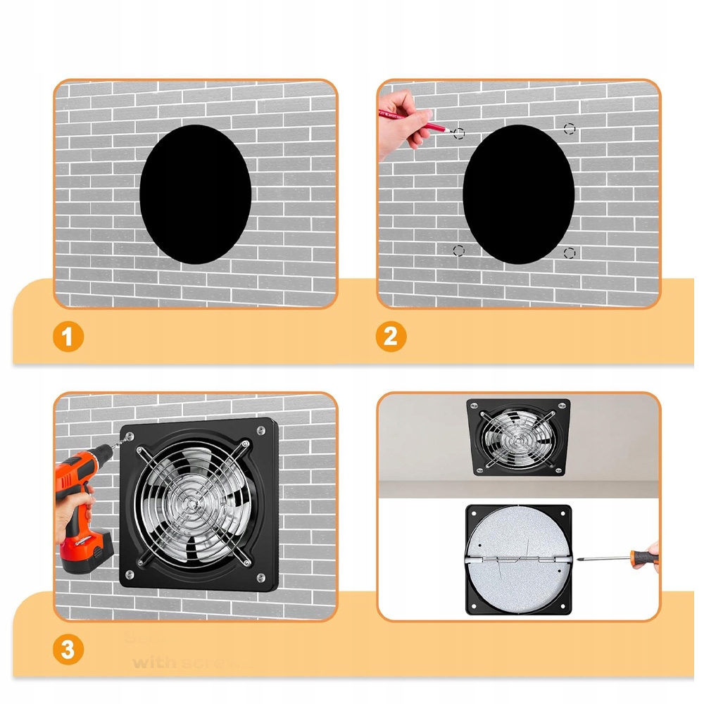 Виріб постачається з розмірами та інструкціями зі встановлення, а також з простими кроками встановлення та може бути встановлений на стінах, віконних стеклах і стелі. Якщо встановлено на стелі, зніміть панель зворотного повітря.