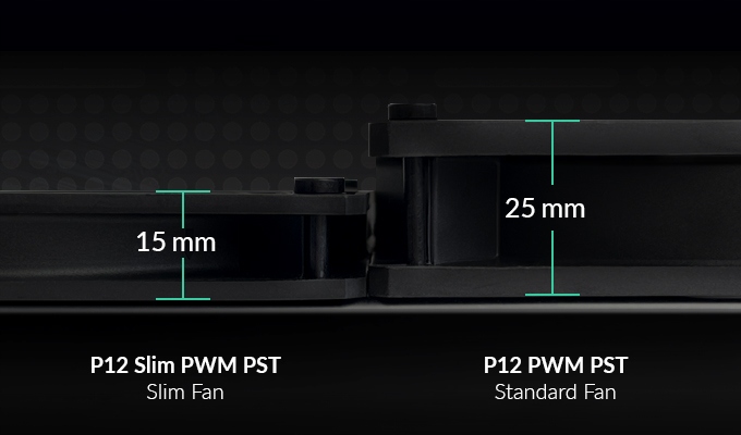 На відміну від звичайних вентиляторів товщиною 25 мм, P12 Slim PWM PST має монтажну глибину лише 15 мм. Це робить його найкращим вентилятором для невеликих споруд.