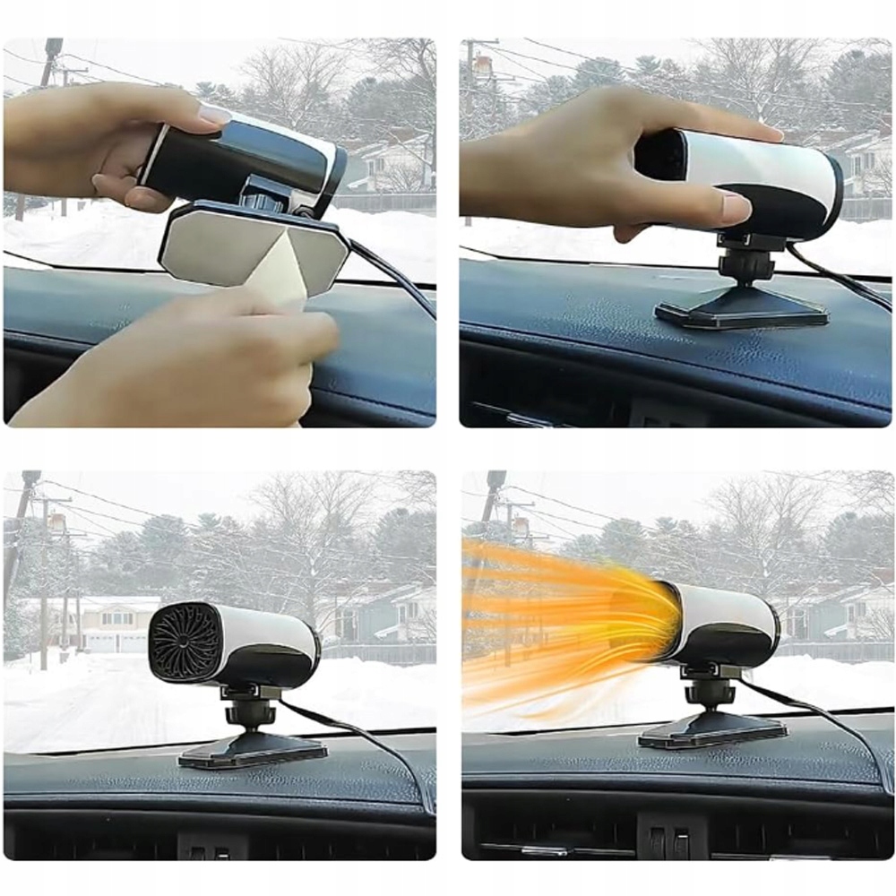 } 【360 градусів регулювання обертання】: Портативний нагрівач автомобіля був розроблений для швидкого зняття морозів, туману та туману з лобового скла транспортного засобу та забезпечення безпеки дорожнього руху. Функція коригування 360-дозволяє адаптувати його до власних потреб. Нехай тепле потік повітря, де ви хочете