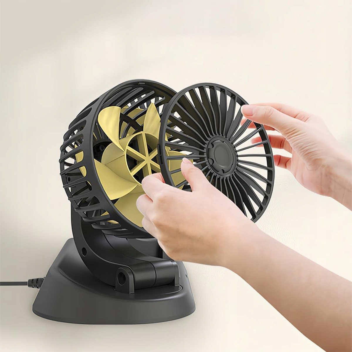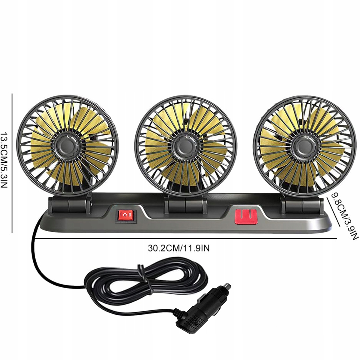 вентилятор автомобіля 3 голови, портативний, вентилятор автомобіля на 360 °, вентилятор на 12 В, вентилятор охолодження автомобіля з 2 швидкості, до вантажних автомобілів, фургонів, транспортних засобів, кемперів (чорний та жовтий) 1>