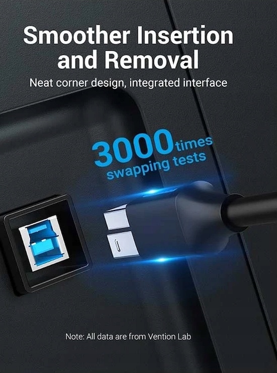 Кабель USB 3.0 для Vention USB-B бренда відрізняється широкою сумісністю, а також дозволяє передати дані зі швидкістю 5000 Мбіт/с. B> 1 метр. Blu-ray накопичувачі, веб-камери, цифрові відеокамери та багато інших. Ваші файли будуть надіслані мить око.