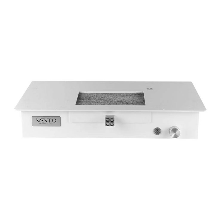 Це рішення користується популярністю серед багатьох косметологів протягом багатьох років: воно дуже просто монтується під верхню частину будь-якого косметологічного столу: єдина умова — мати простір під верхньою частиною, щоб можна було затягнути поглинальну коробку знизу. Практично в будь-якому столі дуже легко вирізати отвір для сітки, яка йде в комплекті. З’єднання поглинаючої коробки зі стільницею під силу маленькому майстру. Завдяки інноваційній ідеї бренду VENTO наш вітчизняний ринок отримав справжній хіт продажів. Якщо стіл вашого нейл-стиліста не має такого місця, подумайте про придбання столу з уже встановленим абсорбером. Ви також знайдете такі столи в нашій пропозиції.
