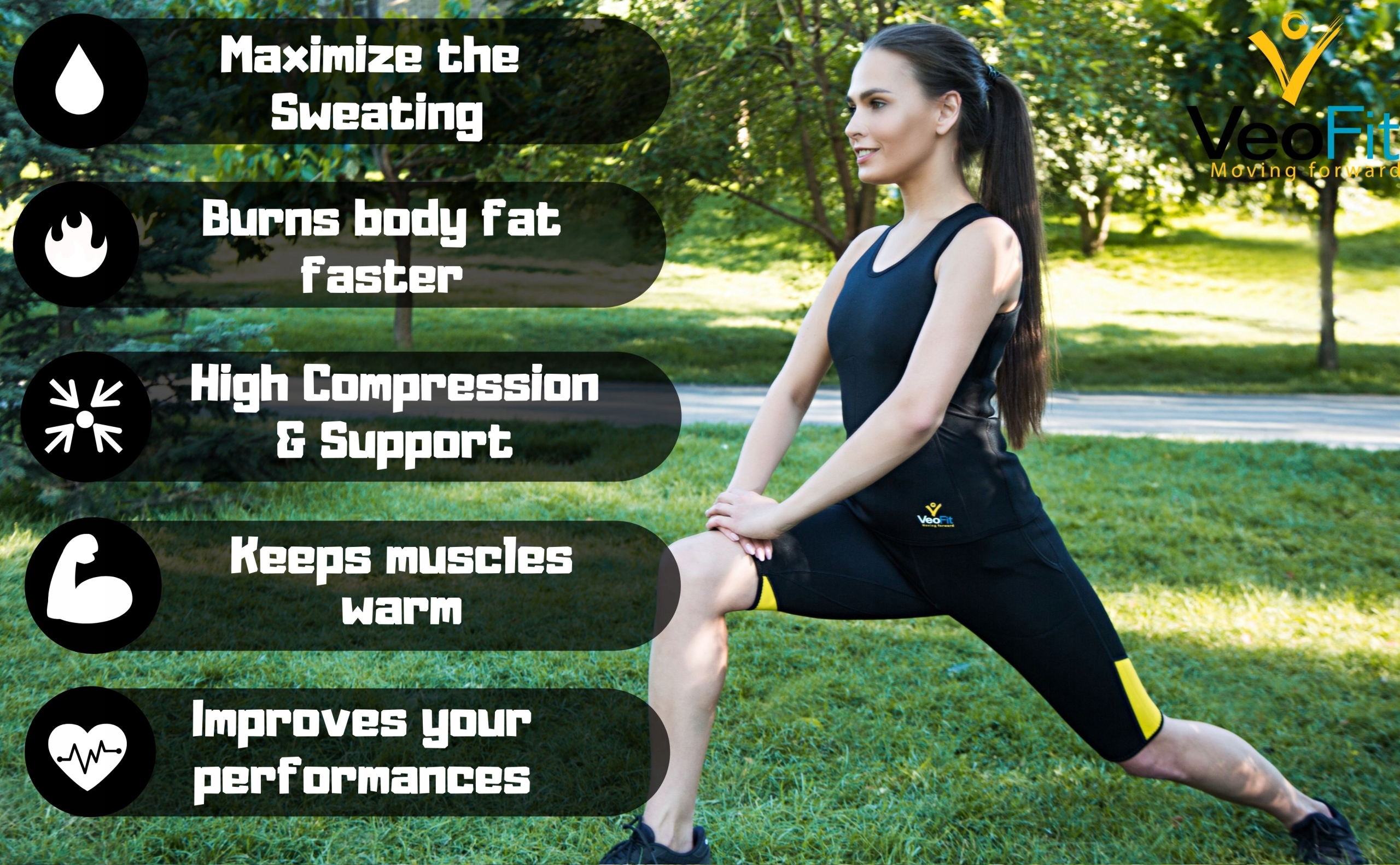 НАЙЕФЕКТИВНІШЕ ТРЕНУВАННЯ: шорти VeoFit є ідеальним аксесуаром для вправ для стрункішого та міцнішого тіла. Вони формують фігуру, роблячи шкіру більш підтягнутою та гладкою. Потовиділення максимально посилюється навколо живота, сідниць і стегон, що призводить до втрати ваги. Поліпшується кровообіг і виводяться токсини. Шкіра оновлюється та очищається, стає пружнішою, а целюліт зменшується.