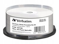 - Назва: VERBATIM 43738 BluRay BD-R SL Verbatim Spindle 25 25 ГБ 6x WIDE PRINT NO ID