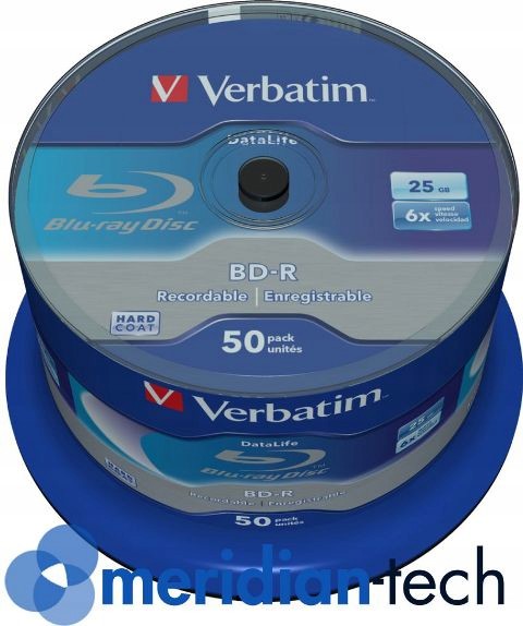 VERBATIM BD-R BLU-RAY 25GB DataLife 6X 50шт жорсткий