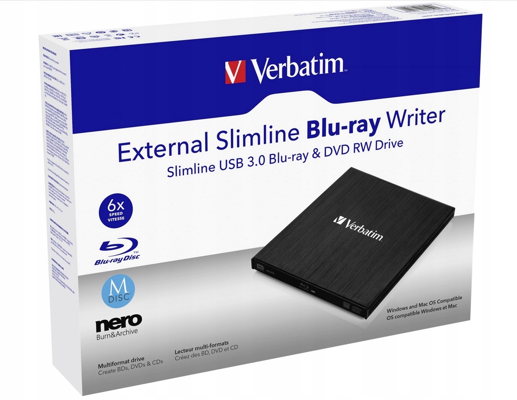 Диски Blu-ray завойовують репутацію найкращих носіїв для архівування цінних даних завдяки їхньому позачасовому формату, широкій сумісності, великій ємності та дуже довгому терміну зберігання порівняно з жорсткими дисками та магнітними стрічками. На жаль, все більше постачальників ноутбуків відмовляються від оптичного приводу на користь більш тонкого пристрою. Verbatim пропонує рішення у вигляді зовнішнього тонкого пристрою для запису дисків Blu-ray.