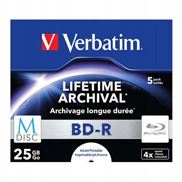 Verbatim M-DISC BD-R, одношаровий, одношаровий/для ін’єкційного друку, 25 ГБ, тис.