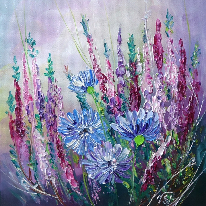 Вереси та айстри Viola Sado R мініатюра полотно, олія 20x20 VIOLAART