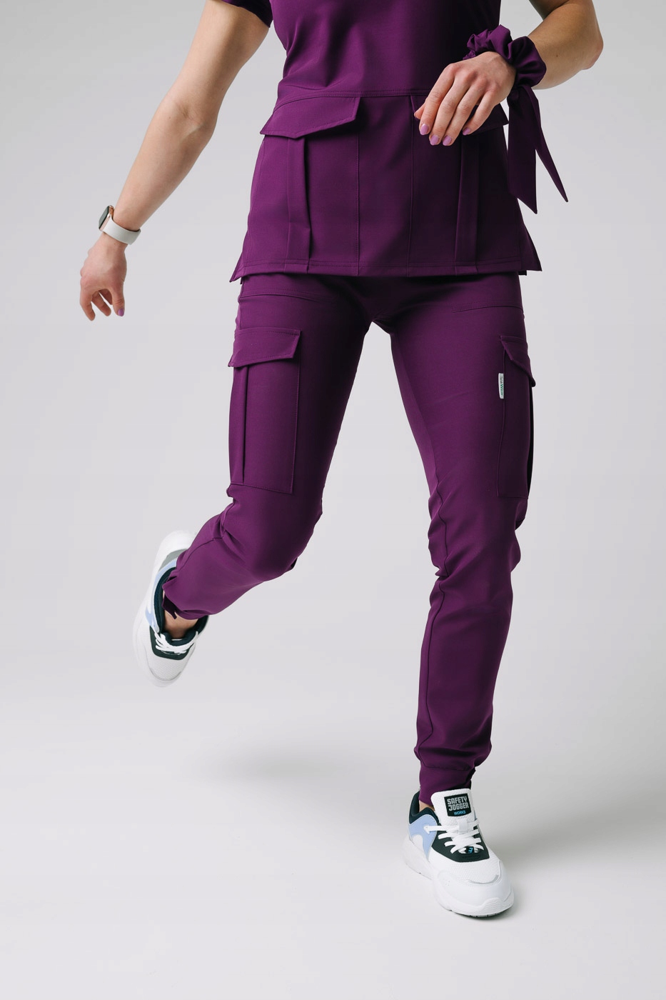 Бруси медичні з текучий, чотиристоронній гнучкий матеріал. Поперек розташований розтяжна гума, прошита в трьох місцях, щоб не порвалася і не порвалася виворот. Є дві накладні кишені спереду і дві з боків бойові кишені, що застібаються ззовні на невидиму застібку. Нижня частина штанів ми завершили манжетом з еполетом і кокосовим ґудзиком. Кокосові кнопки які ми використовували, водостійкі та не фарбуються. Щоб зробити все якомога простіше Вставляючи ніжку, ми використовували тріщину, яка закінчується болтом. Штани в тон Етна