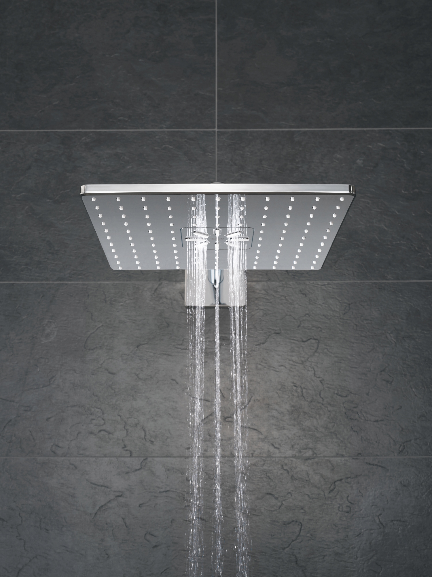 - Душова лійка має розміри 310 x 310 мм, що дозволяє використовувати два варіанти потоку - PureRain і ActiveRain.