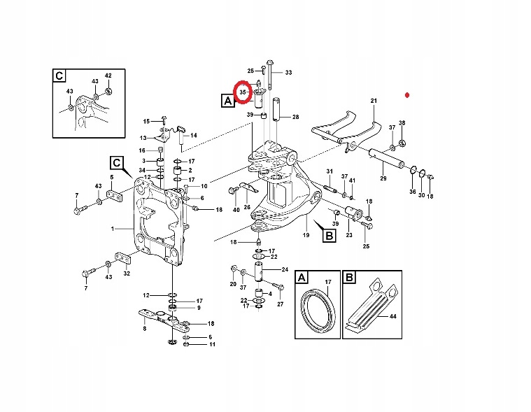 The upper pony bar used in a backhoe loader Volvo BL60 BL61 BL71L BL71B BL60B BL70B BL71B h1>