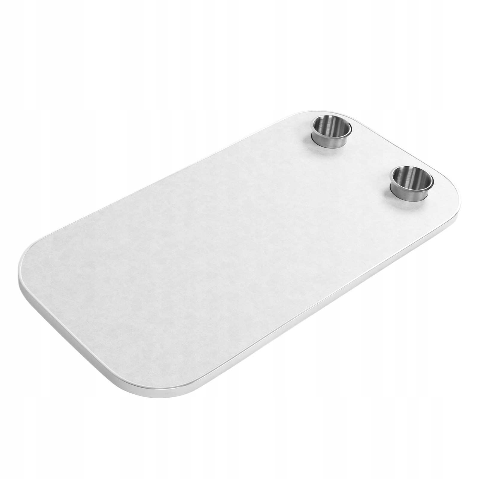 1. Інформація про продукт: велика стільниця розміром 800 x 400 мм / 31,49 x 15,74 дюйма з 2 підстаканниками з нержавіючої сталі та круглою фанерною дошкою 175 мм / 6,88 дюйма на тильній стороні для пробивання отвору.