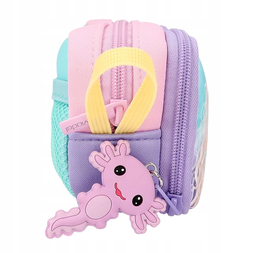Підводна мрія: пенал TOPModel яскравих бірюзових і рожевих кольорів має фантастично красивий мотив із моделлю русалки та милими аксолотлями. У чотирьох окремих відділеннях (деякі з петлями для ременя) достатньо місця для ручок та іншого. Пенал має плоске сітчасте відділення на задній частині.