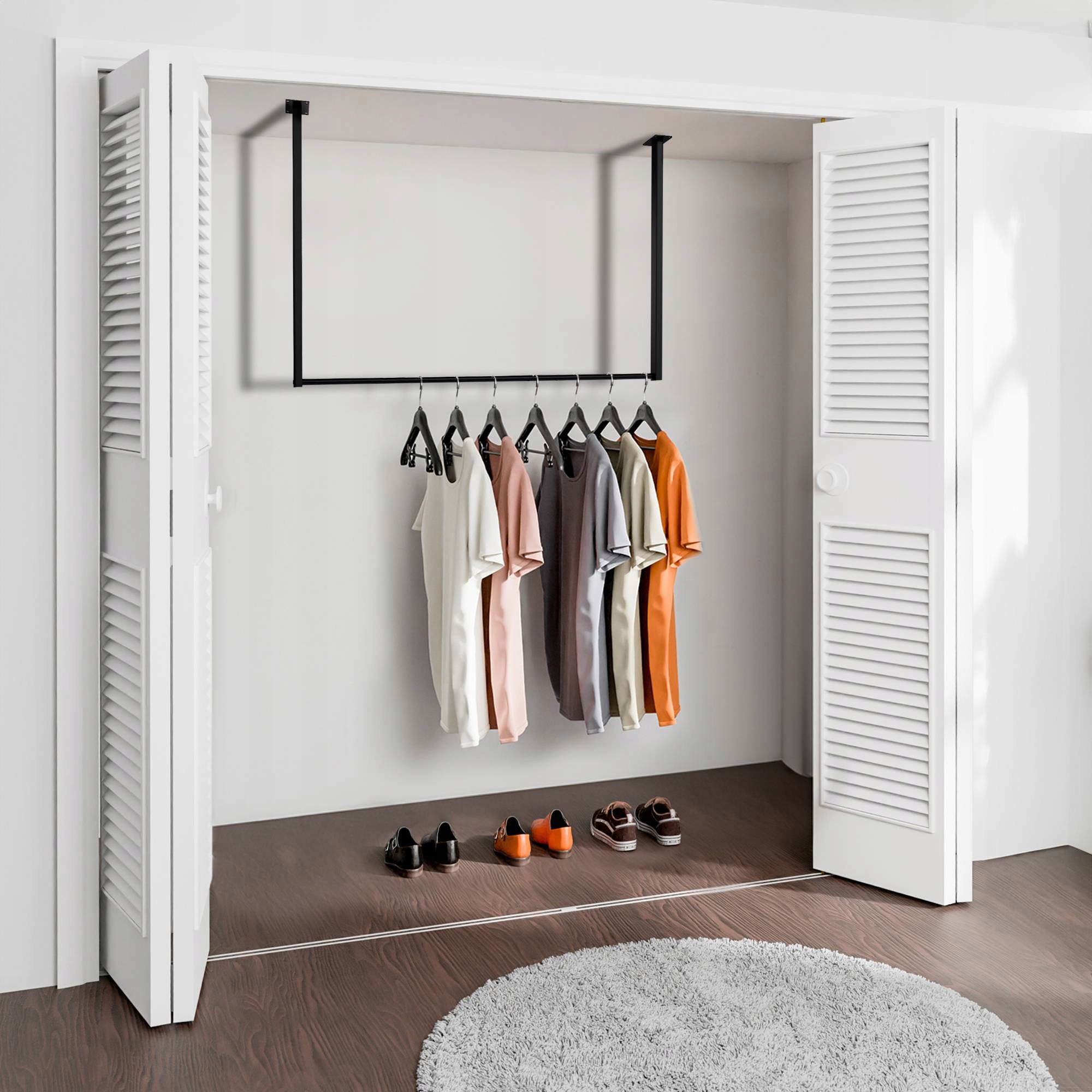 KleiderStang Fenton - це елегантний і мінімалістичний гардероб, ідеально підходить для передпокою, спальні або гардеробу. Завдяки унікальній стельовій збірці він пропонує багато можливостей для домовленостей, що дозволяє з'єднати комоди, шафи або взуття для взуття. Конструкція: Зроблена з порошкової сталі, витримує навантаження на 50 кг. 120 см