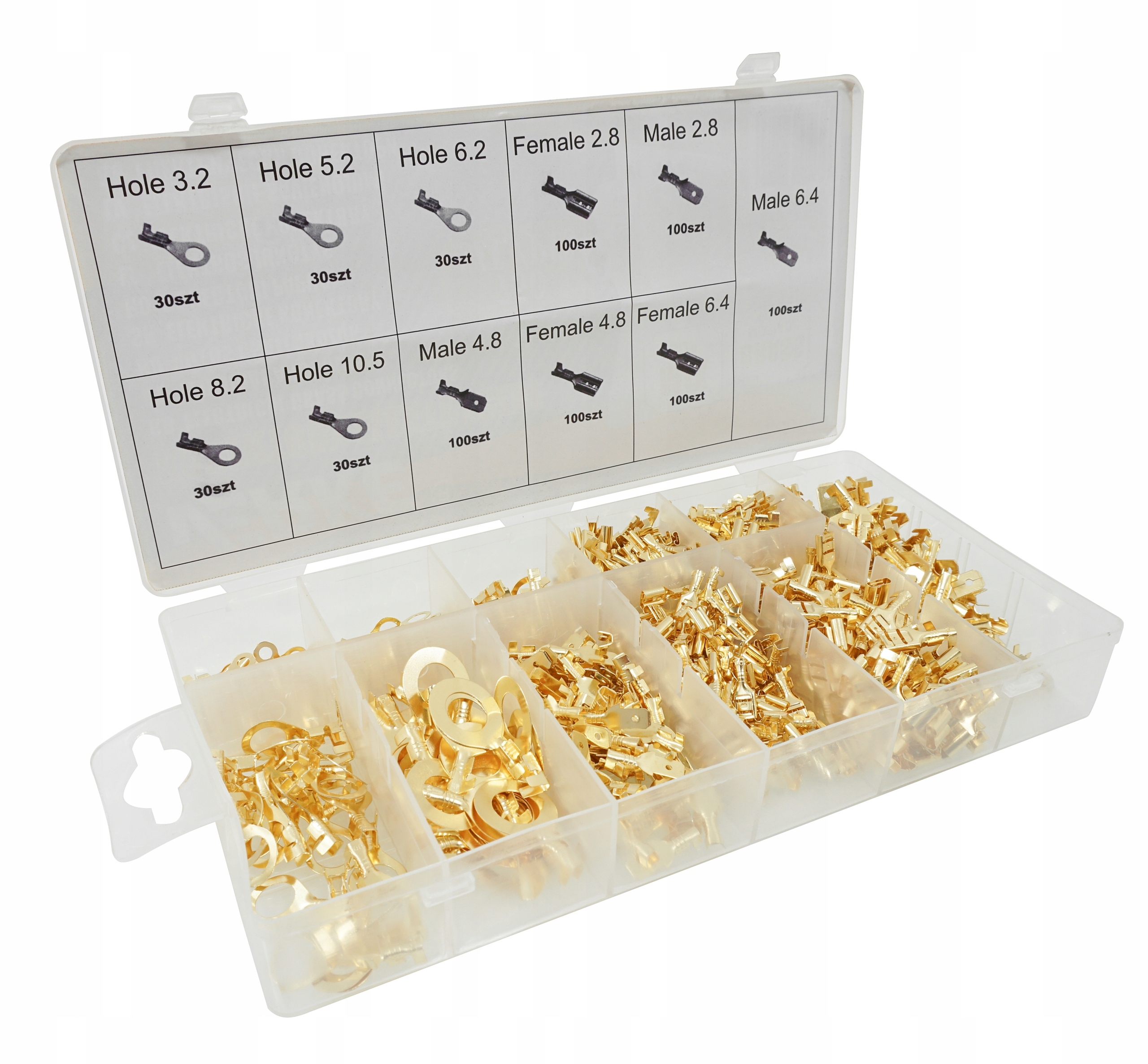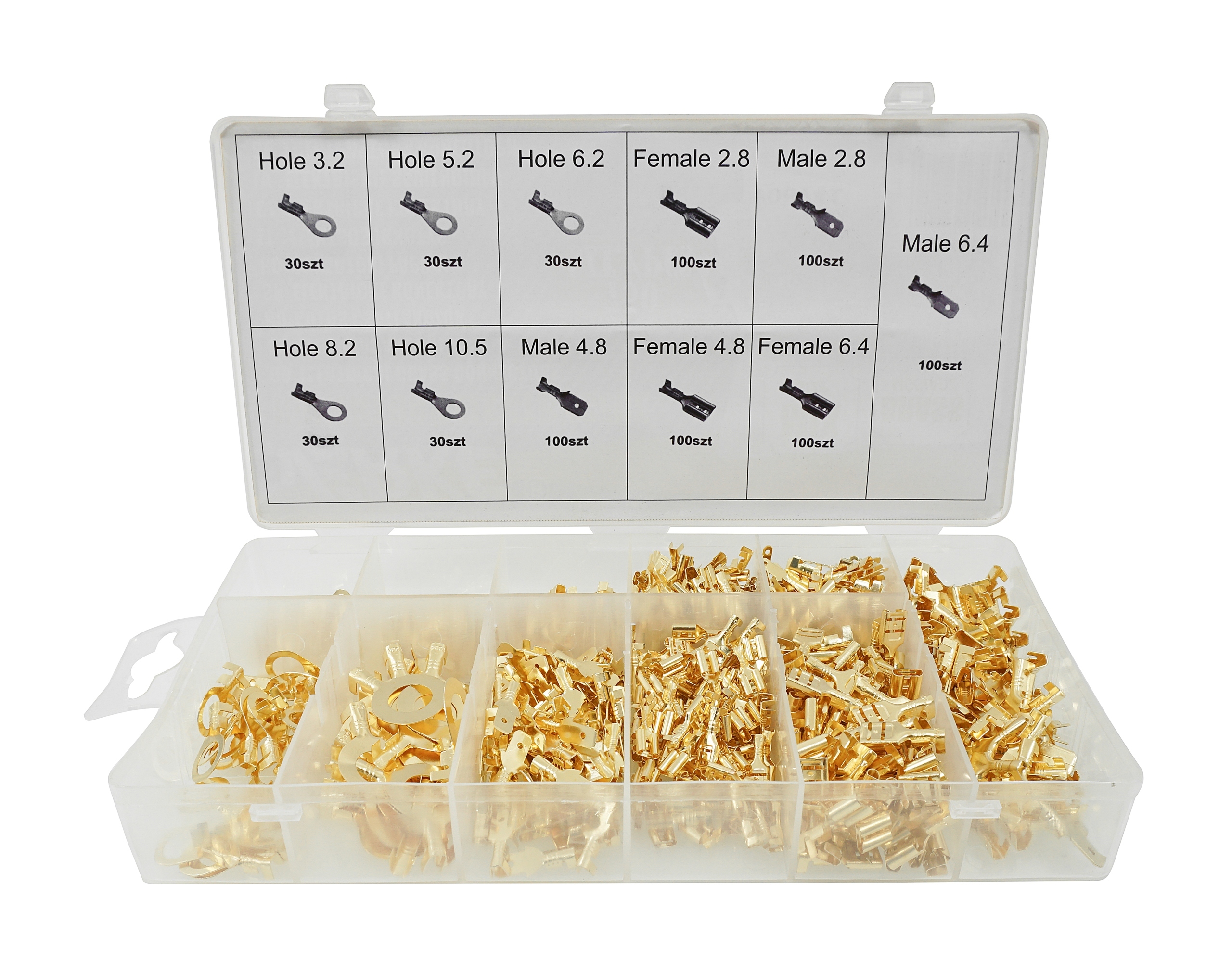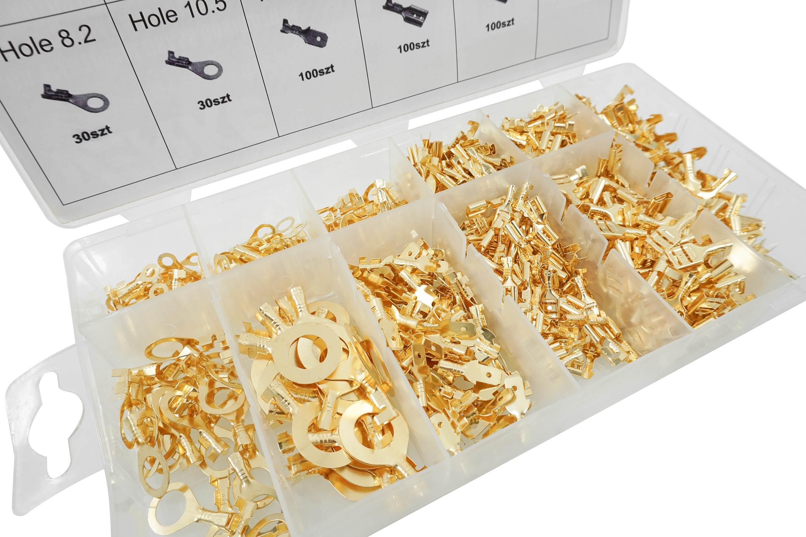 Набір роз'ємів, призначених для обтиску багатожильних кабелів, гарантує міцне та надійне з'єднання. Додатки включають: в: легкових автомобілях, вантажівках, фургонах, сільськогосподарських і будівельних машинах і скрізь, де кабелі підключені до наступних елементів установки. Матеріал - латунь.
