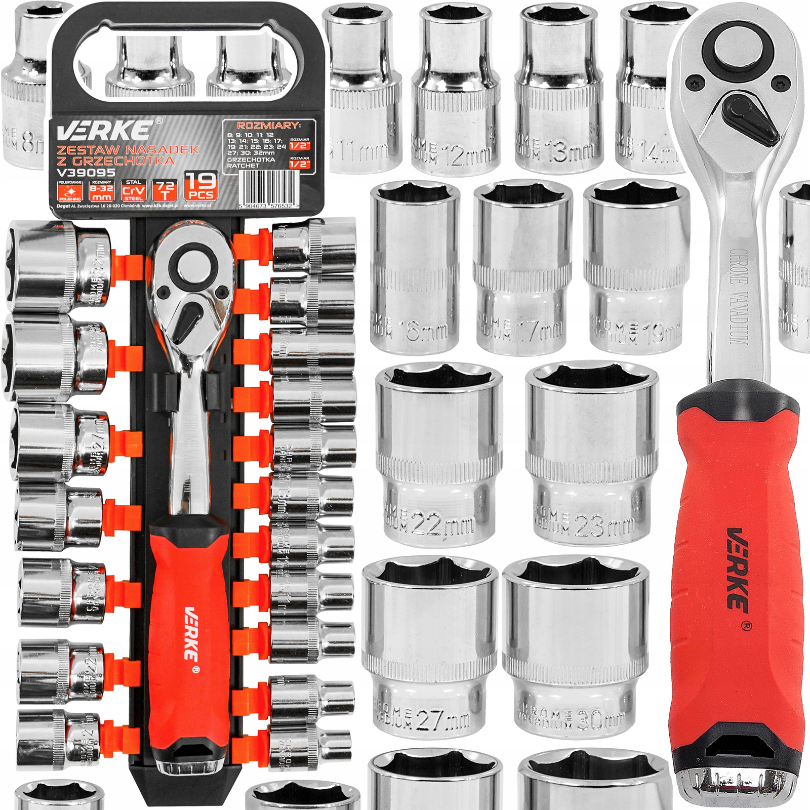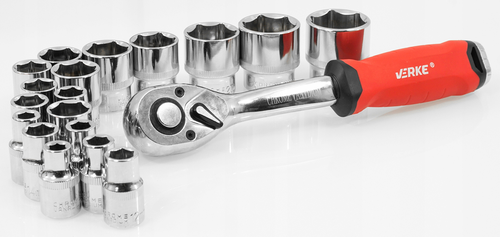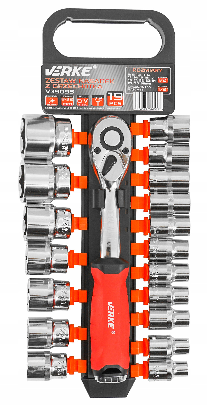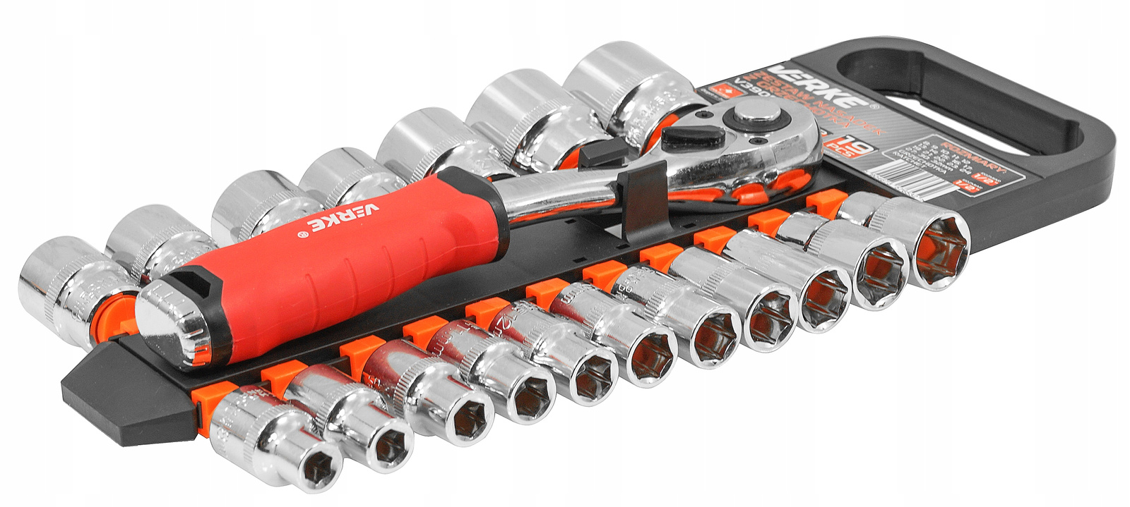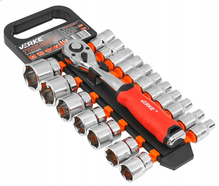 Верке V39095 Набір гайкових ключів з храпочкою 1/2 ", 19 елементів, 72т