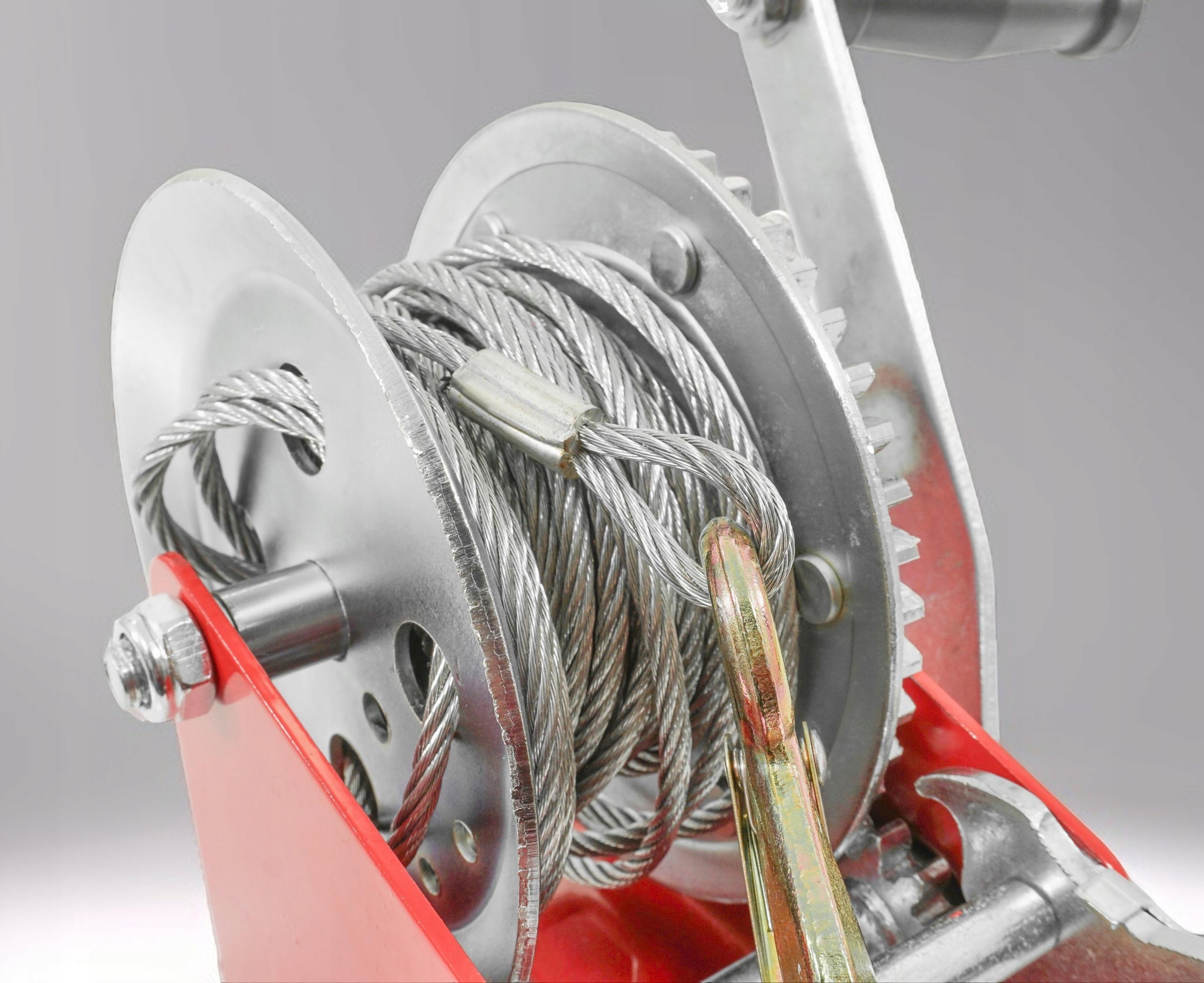 Це лебідка з міцною сталевою конструкцією, призначена для лебідки невеликих човнів, водних мотоциклів, квадроциклів, невеликих транспортних засобів тощо. Вона має легкодоступний важіль для зміни напрямку обертання: намотування/розмотування. Лебідка виготовлена з високоякісних матеріалів з відповідною міцністю - конструкційна сталь і литий гак з поворотною пружиною. Пристрій управляється рукояткою разом із храповим механізмом, ці властивості дозволяють піднімати та опускати предмети. Його можна використовувати, зокрема, для розтягування сітки огорожі, прив’язування, кріплення та перетягування важких і великих предметів.