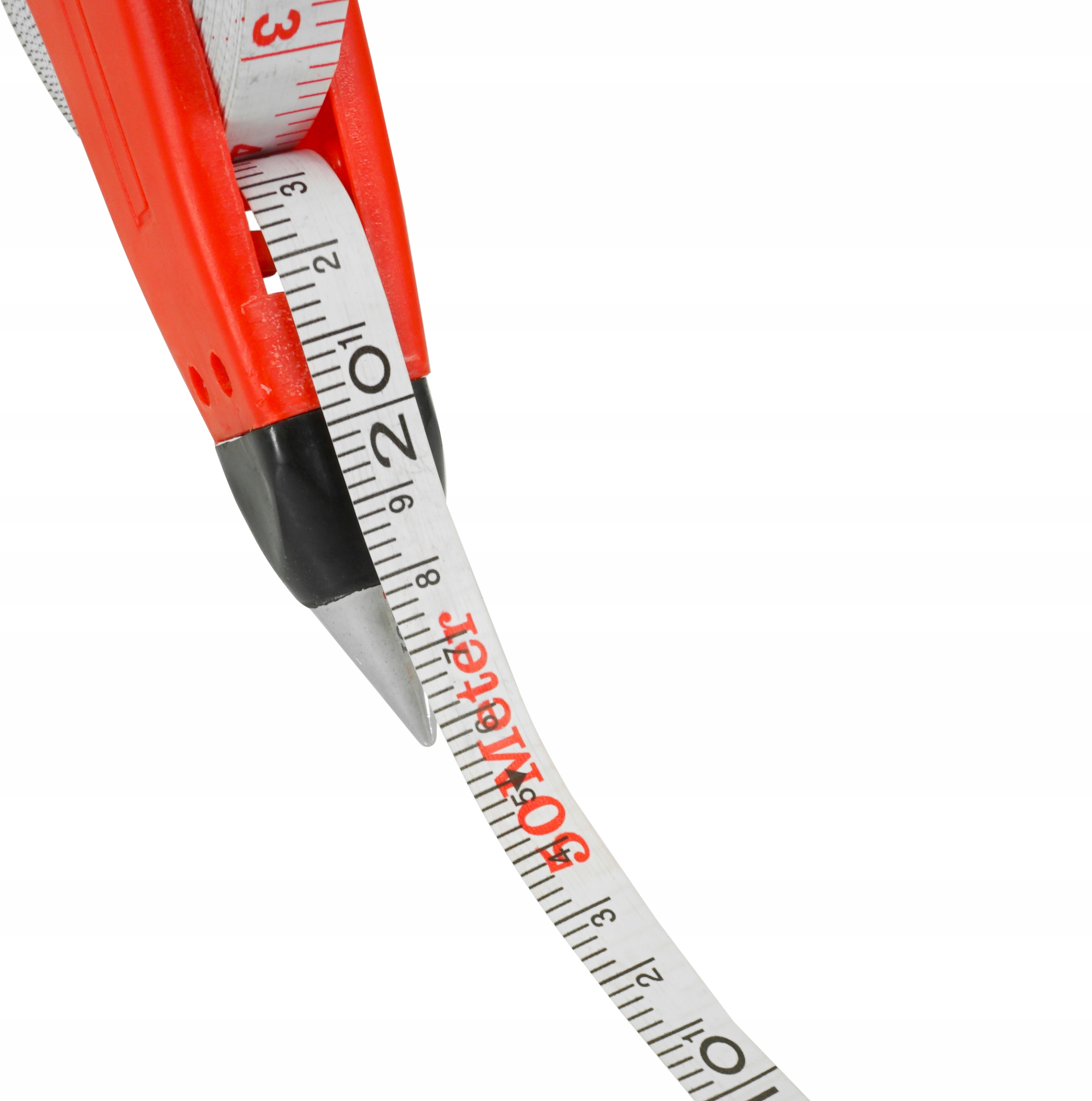 Геодезична міра довжиною довжиною 50 м і 12 мм шириною. Розроблений для вимірювання великих відстаней на відкритому зоні або в приміщенні. Стрічка виготовлена з стійкого до стирання та згасання волокна. Використовується кожух, дозволяє підтримувати стрічку в чистоті та запобігає блокувати стрічку у закритому касеті у разі забруднення піску або ґрунту. Зручний кривошип прискорює прокат стрічки після вимірювання.