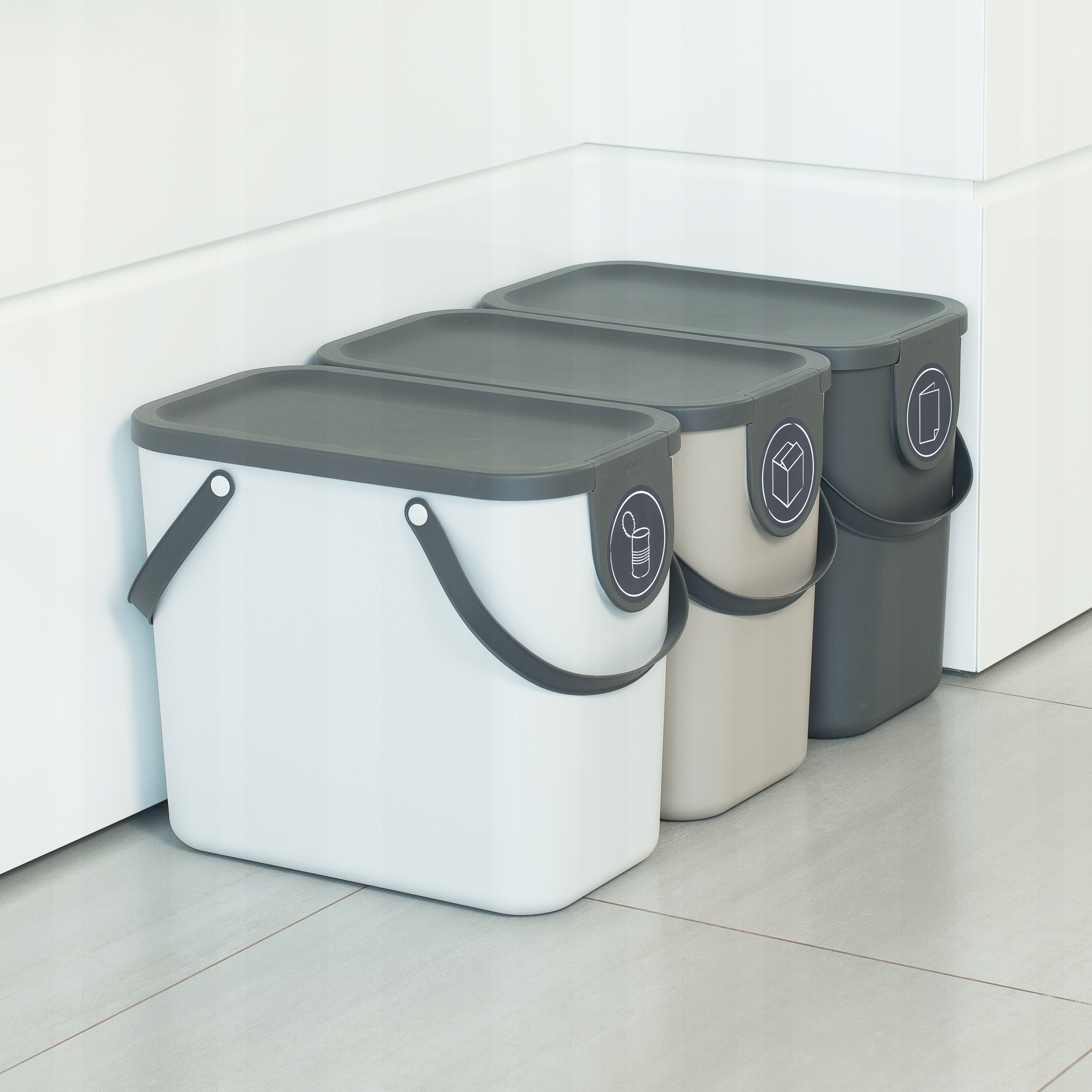 Rotho ALBULA — це передова система розділення відходів, яка забезпечує зручність та ефективність переробки як вдома, так і на робочому місці. Будь то кухня чи офіс, ця система легко впорається з різними видами відходів. Модульна конструкція дозволяє легко та гнучко розташовувати кошики, що особливо зручно в приміщеннях з обмеженим простором. Коли кошики не використовуються, їх можна легко скласти разом, заощаджуючи простір.