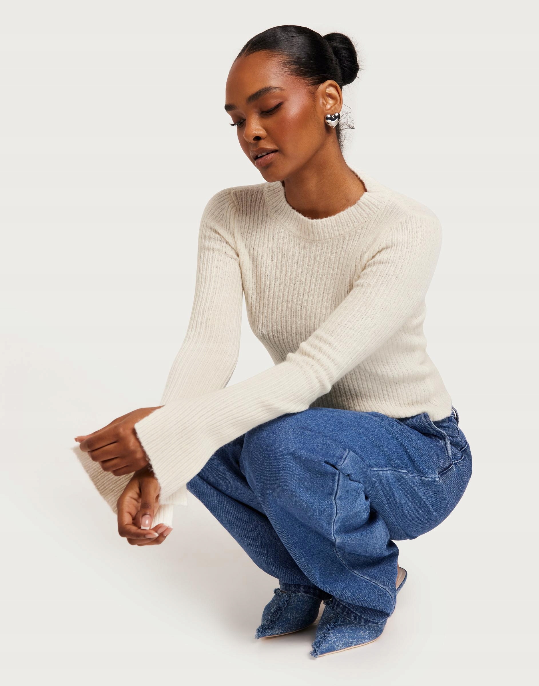 VERO MODA КРЕМОВИЙ ДЖЕМПЕР В РУБРИЧКУ З РОЗШИРЕНИМИ РУКАВАМИ 8KI NG5__M