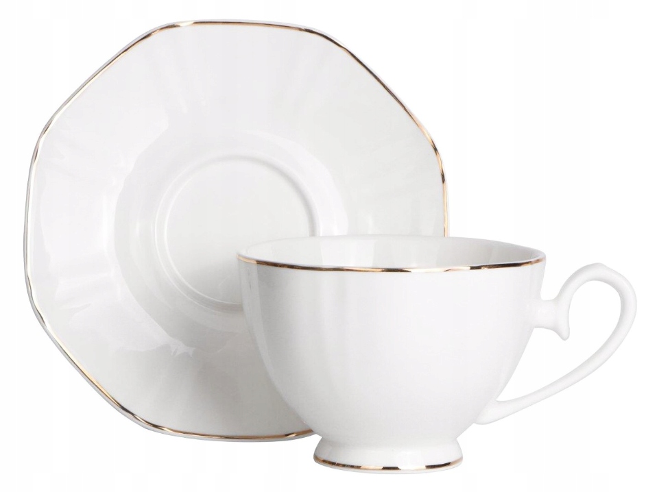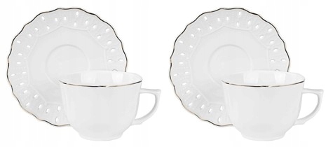 Елегантний набір з двох чашок з тарілками, прикрашеними золотими рамками, є чудовим вибором для любителів класичного та витонченого порцеляни. Чашки відрізняються делікатною, витонченою ручкою, яка дає їм тонкий шарм.