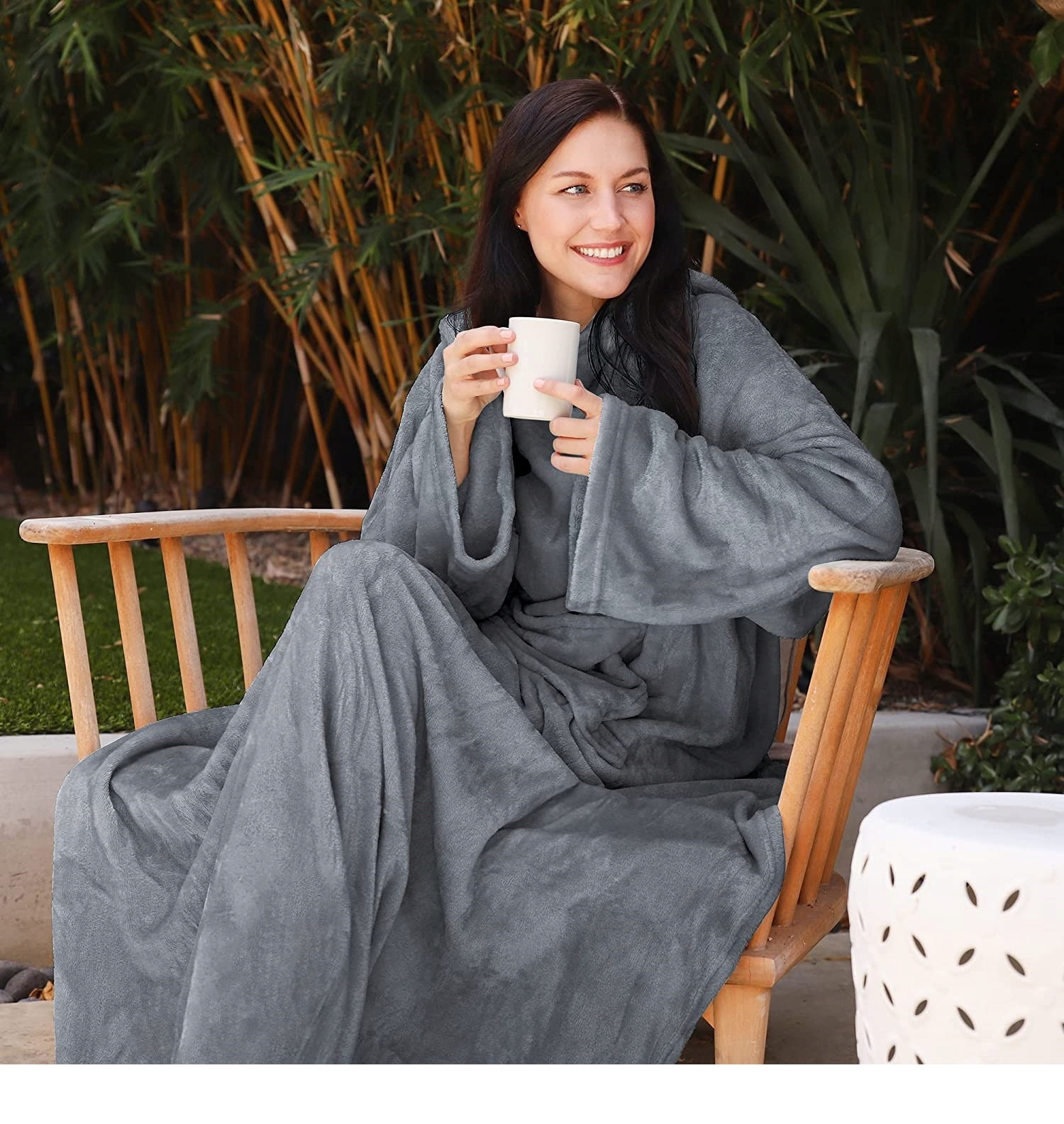 - Цей потужний халат-ковдра, виготовлений із м’якого поліестеру, забезпечує максимальне тепло та комфорт!