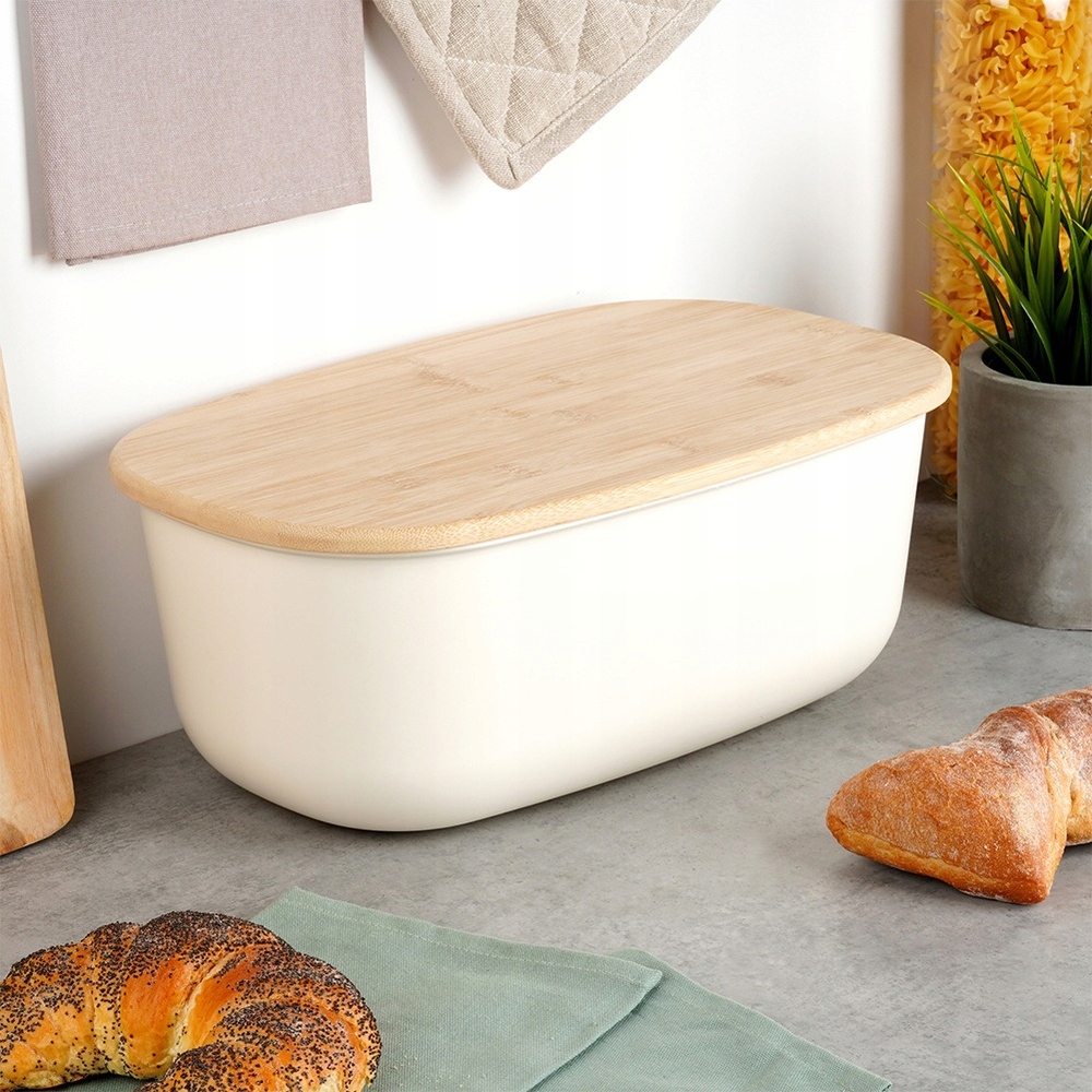 місткий хліб із сучасним дизайном. Він має практичне закриття у вигляді дошки з дерева, тому ми можемо використовувати його для вирізання хліба. Це виглядає надзвичайно вражаюче на кухні. Завдяки великій потужності він буде вміщувати різні види хліба. Простий, класичний візерунок зробить його підходящим на кожній кухні. Дошку рекомендується двічі з ріпаку або оливковою олією, натерти надлишок і залишити на кілька годин. Потім ретельно вимийте в гарячій воді, протріть і залиште повністю висохнути. Завдяки цій обробці дошка менше поглинає вологу і довше зберігає належну форму. Дошки не повинні мити в посудомийній машині. оригінальний продукт Vilde. вироблявся відповідно до європейських стандартів.