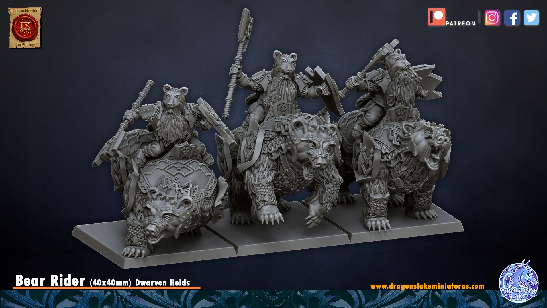 Вершники гномів на ведмеді x3 - мініатюри DL - 3D-друк