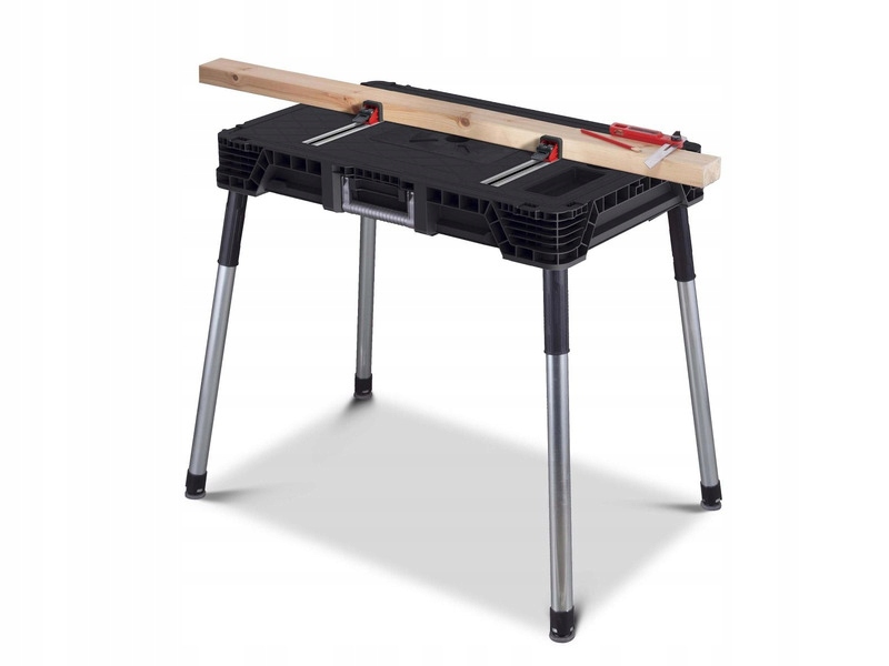 Ви ентузіаст DIY? Виклики – ваша спеціальність? Ідеально! Портативний стіл Jobmade був створений з думкою про вас! Багатофункціональний стіл, який також називають портативною робочою станцією, виготовлений з використанням пластику найвищої якості, тобто поліпропілену. Однією з особливостей виробу є відсутність будь-якого обслуговування. Що вам дійсно потрібно, щоб підтримувати його в чистоті, так це волога ганчірка, і все готово. Стільниця повністю стійка до погодних умов, включаючи ультрафіолетове випромінювання. Під стільницею знаходяться 4 металеві ніжки та невеликий контейнер із 4 затискачами.