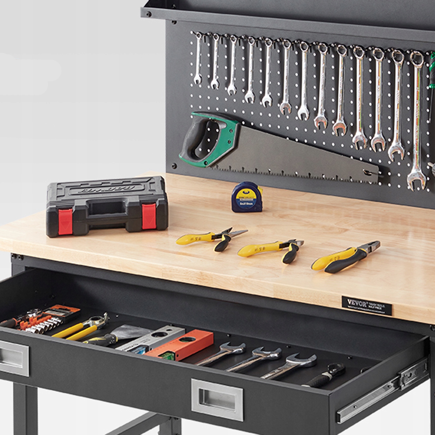☑️ Пегборд із кількома отворами: Полегшує організацію інструментів, зберігаючи їх під рукою та охайними.