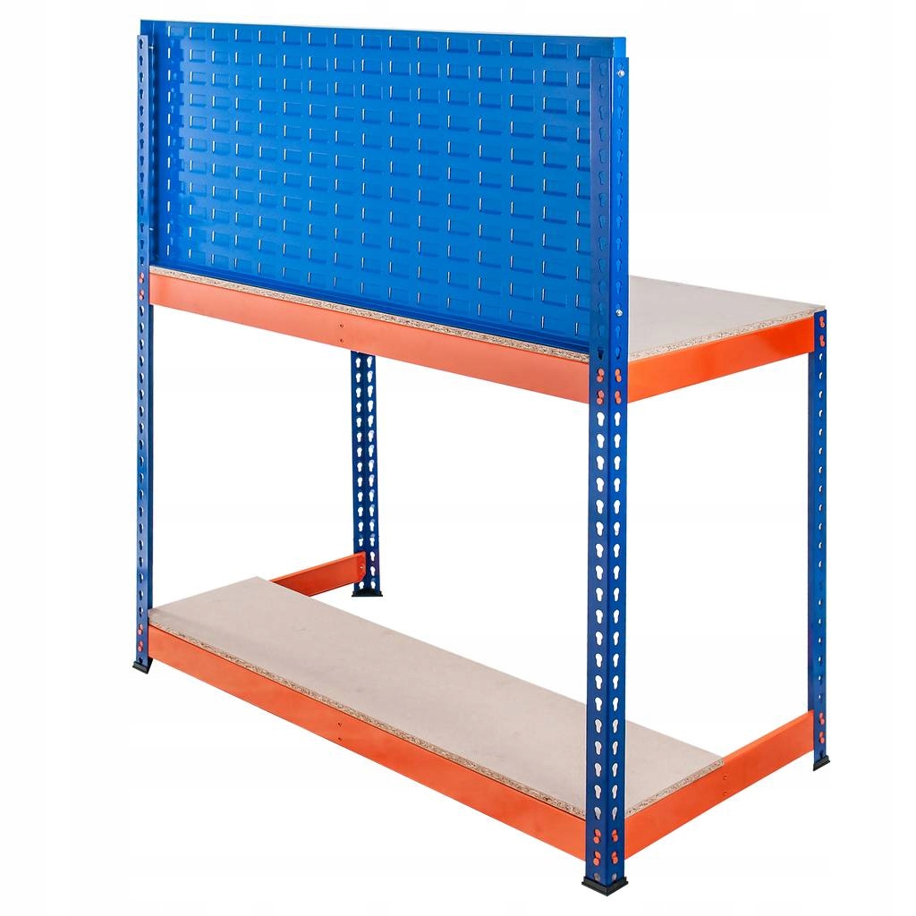 Верстак Mega-M ідеально підходить для організації пристроїв, які використовуються на роботі. Вантажопідйомність 400 кг на полицю дозволяє зберігати цехове приладдя, верстати, виробничі матеріали або інструменти, а перфорована надбудова дозволяє їх бути повішеним. Дворівневий робочий стіл дозволить підтримувати порядок у будь-якій майстерні, гаражі чи студії.