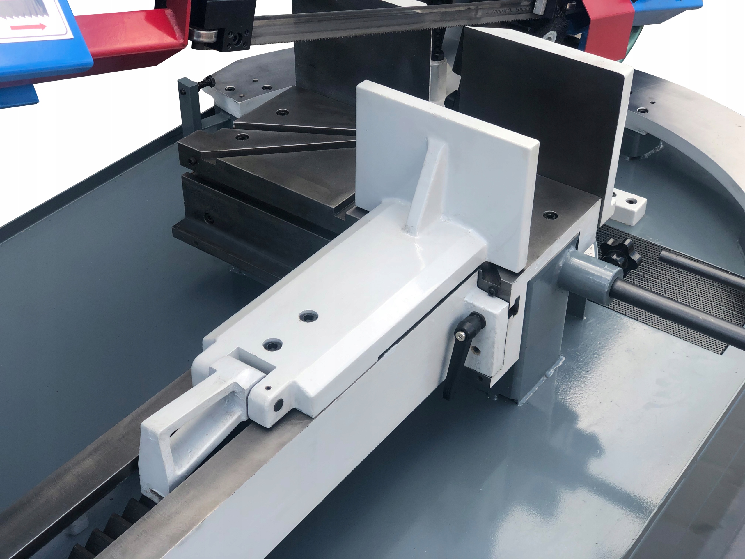 - Масивна, стабільна та витончена конструкція та рукоятка з масивних зварених сталевих листів забезпечують машині дуже високу жорсткість і стабільність під час різання, що забезпечує точність різання та довго безвідмовна робота. Конструкція та використання відрізної стрічки шириною 27 мм,дозволяє виконувати багатосерійні різи як профілів, так і повних деталей.