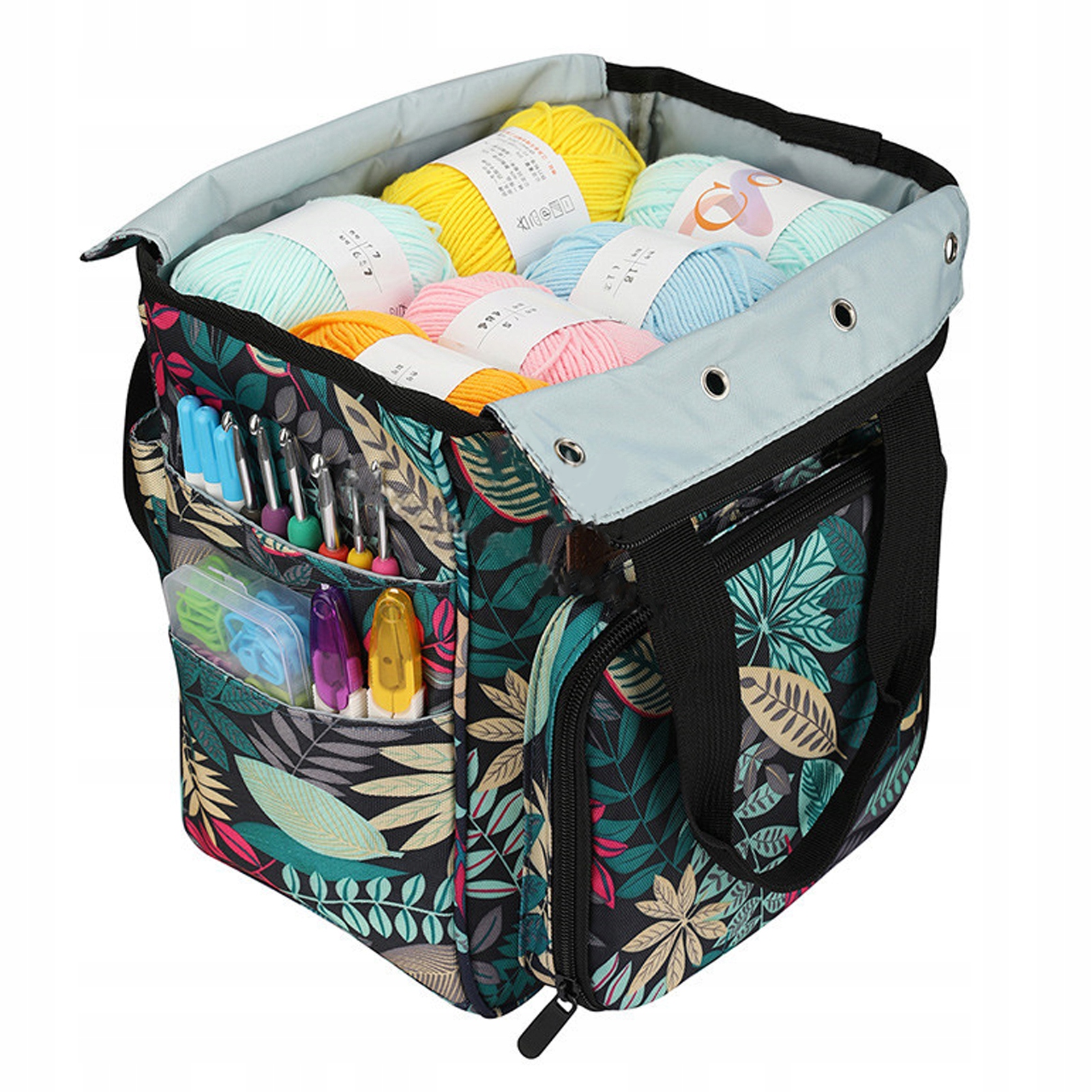 ⏺ Функція: домашнє та дорожнє зберігання. Тут достатньо місця для різних кольорів пряжі, гачків для в’язання, інструкцій та інших дрібних аксесуарів. Це чудовий подарунок для людей, які люблять в’язати гачком, в’язати, подорожувати чи спілкуватися в дорозі.