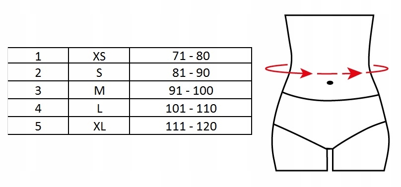 Виберіть розмір відповідно до таблиці нижче вимірювання окружності талії в сантиметрах.