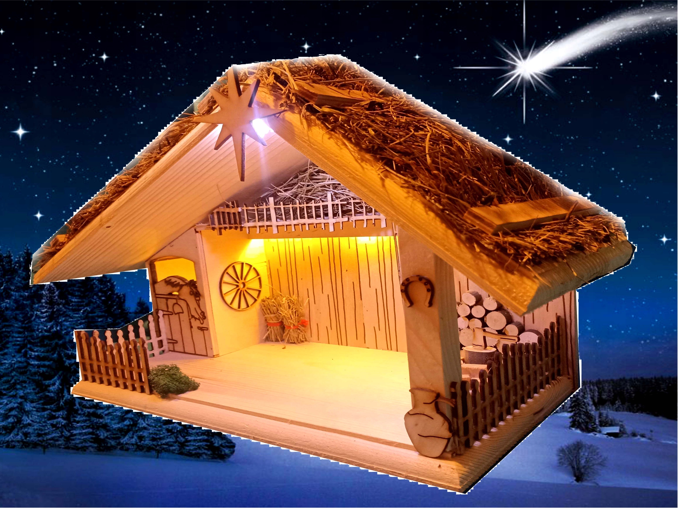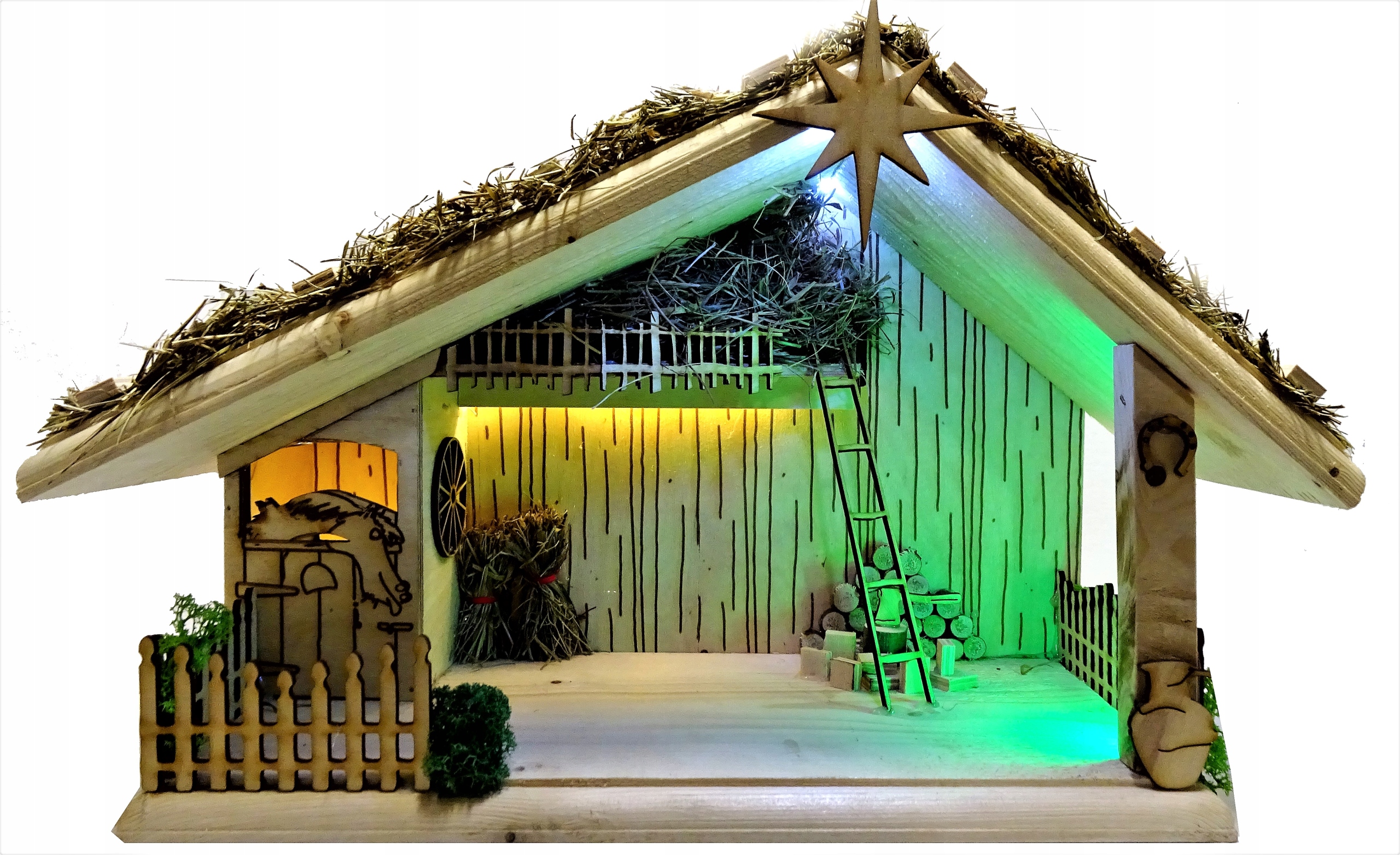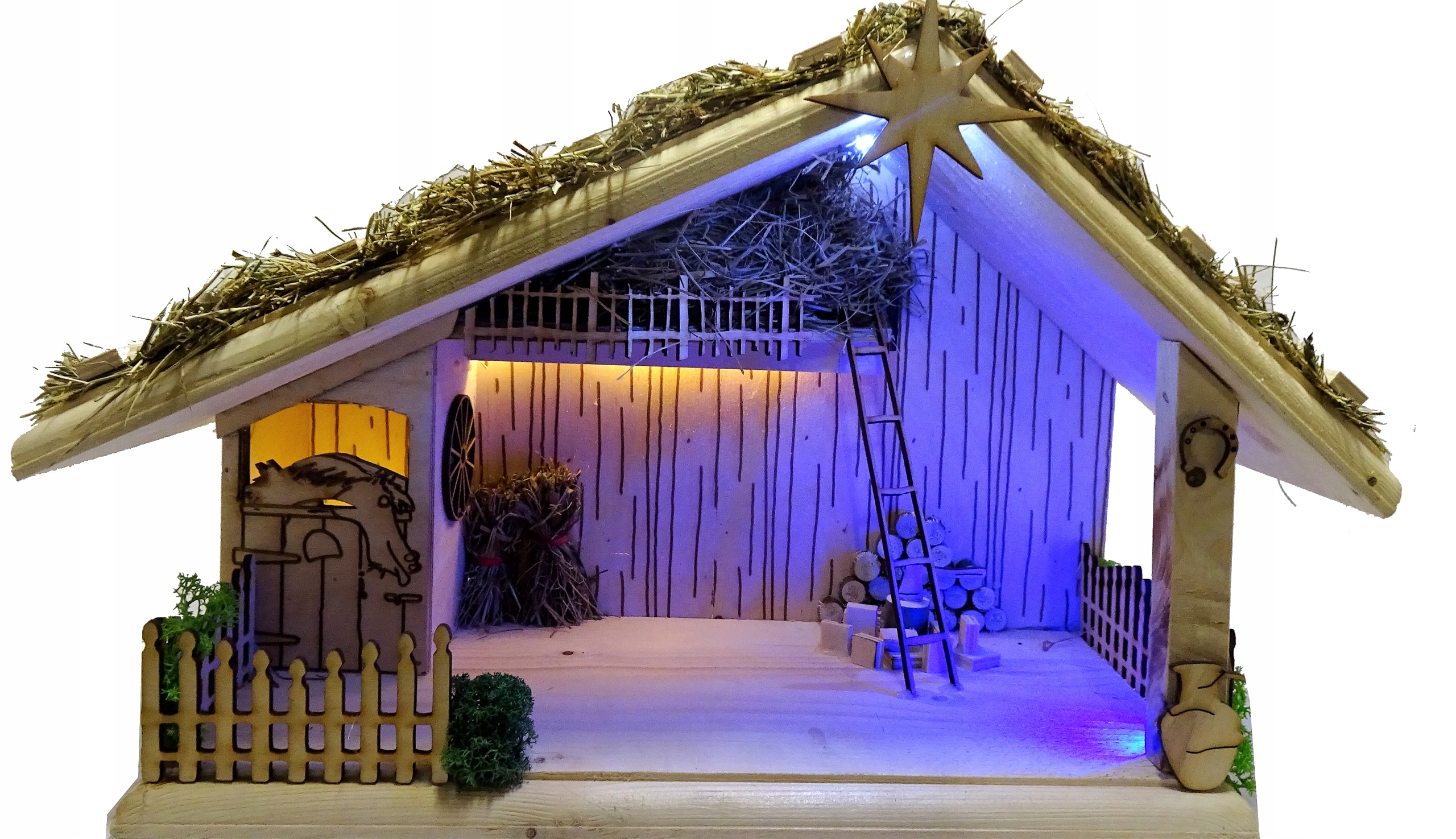 У вертеп входять два світлодіодні світильники, які живляться від 4 батарейок (жирова паличка).