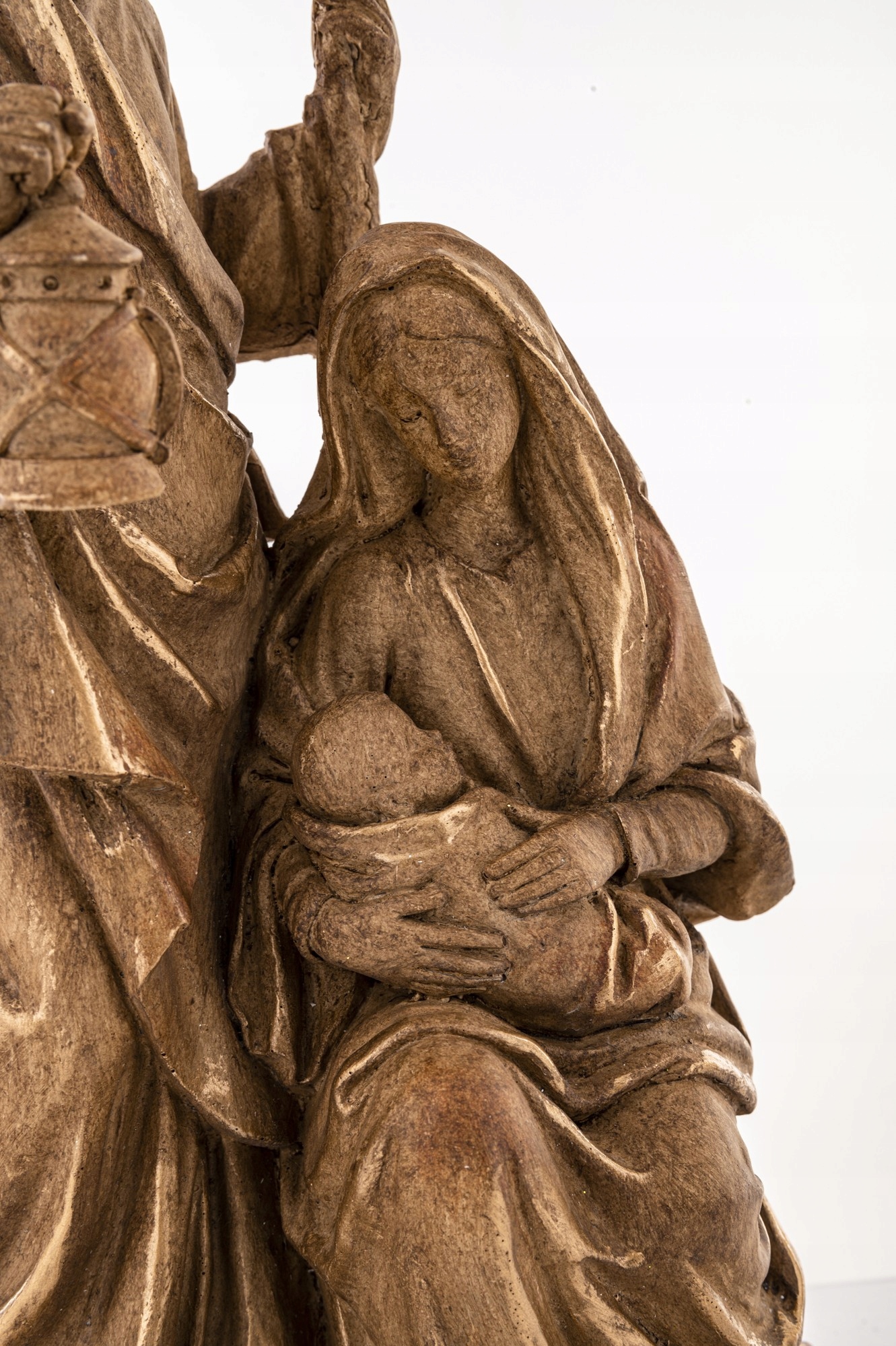 Гарний вертеп як різдвяна прикраса із зображенням Святого Сімейства . Вертеп виготовлений із пластику як імітація дерев'яної скульптури. Це також чудовий подарунок для ваших близьких.